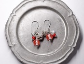 林檎みたいなアンティークビーズにコロンと丸いお花カレンシルバーのピアス(再販)