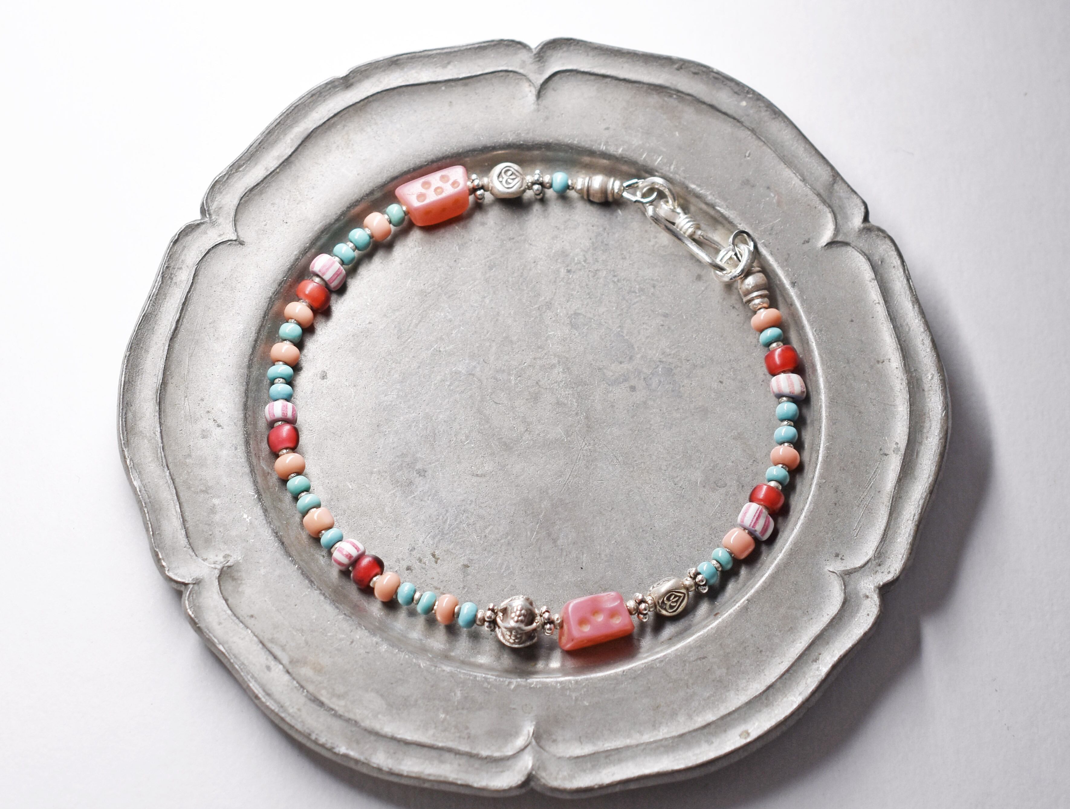 シャーベットカラーが可愛らしくも、オールアンティークのこだわりブレスです。