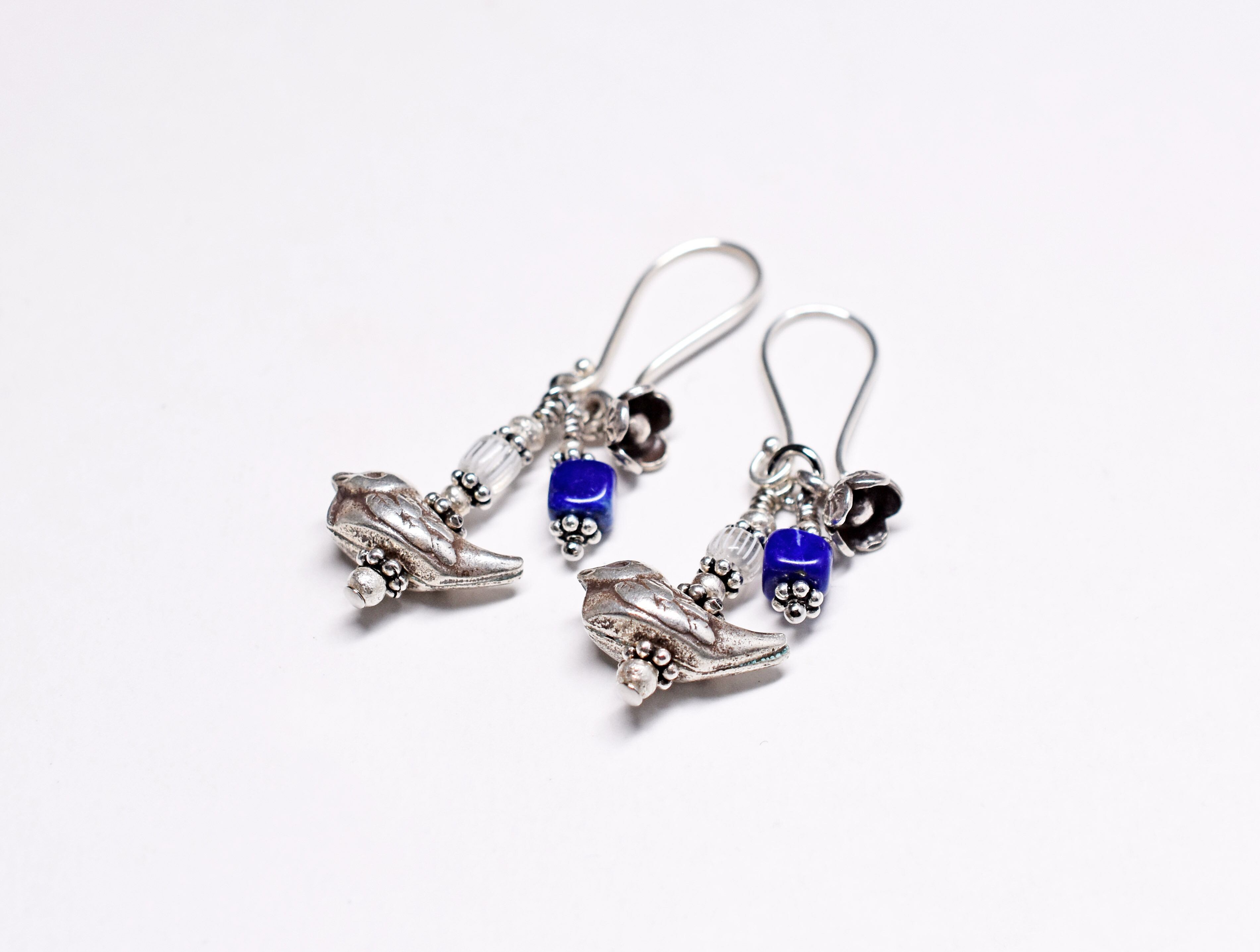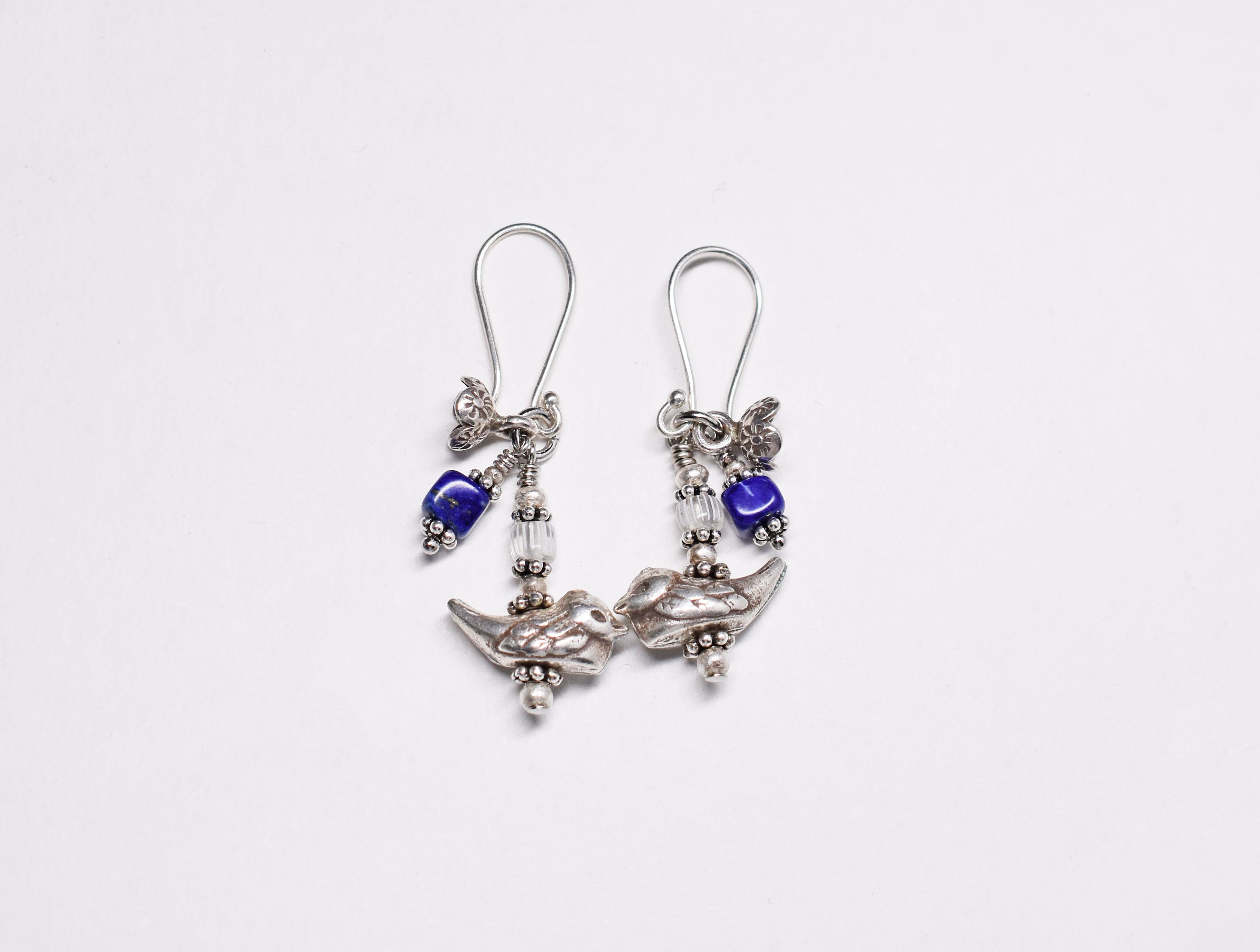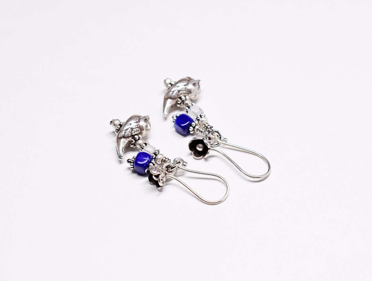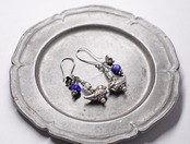 小鳥と蕾カレンシルバーとラピス、アンティークビーズのピアス
