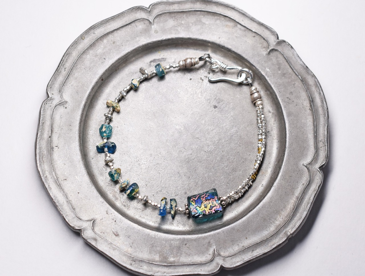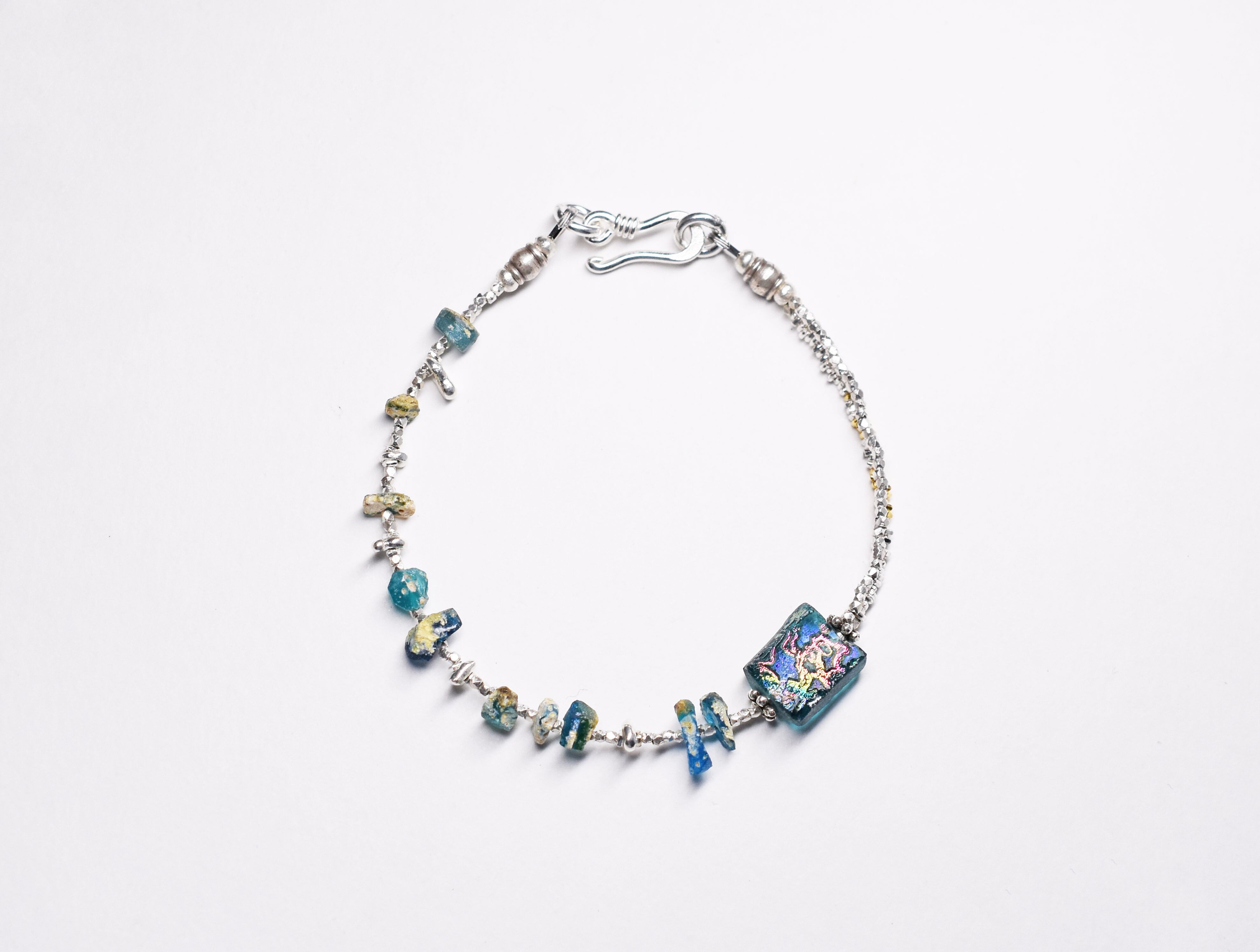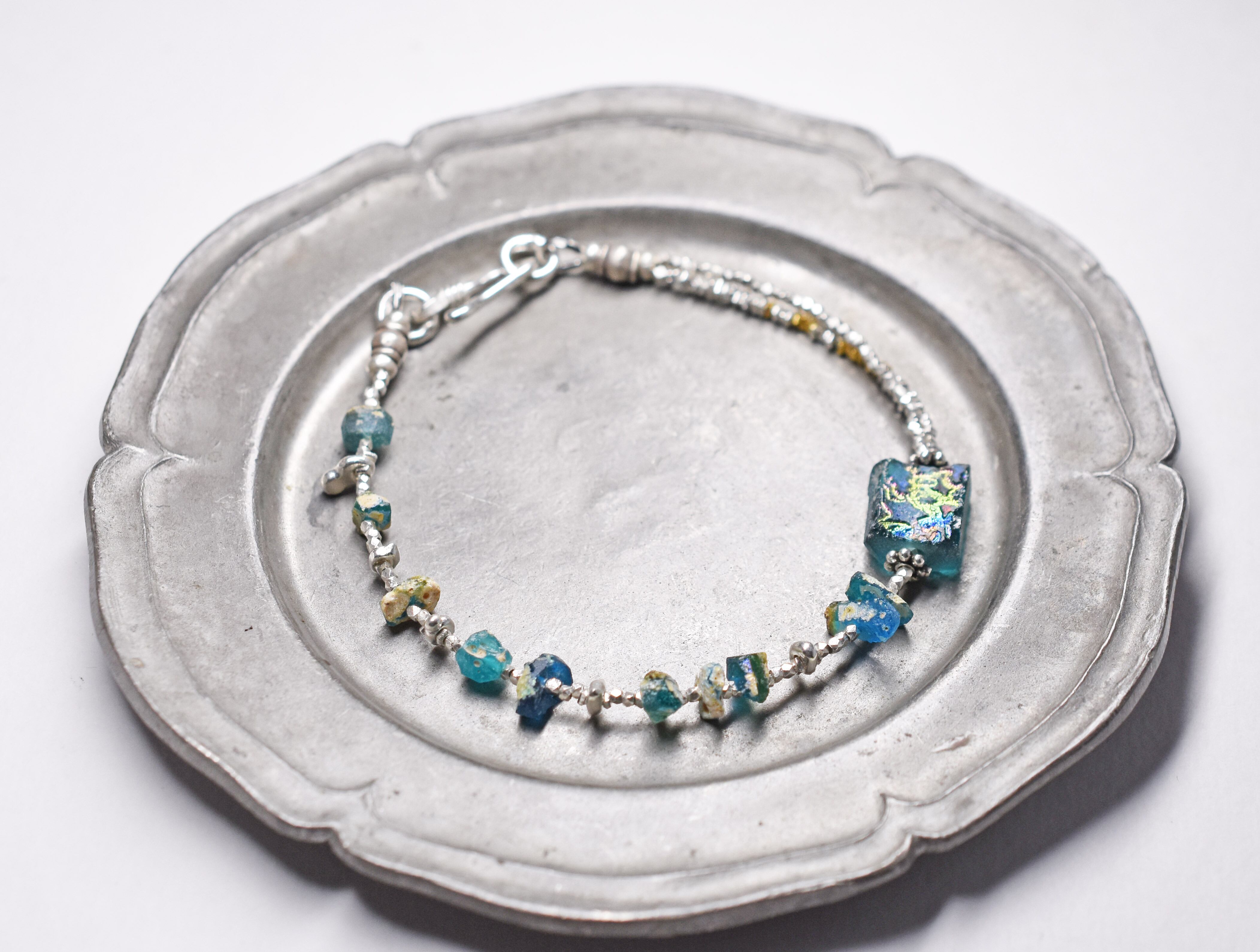 銀化ブルーローマングラスと煌めくカレンシルバーのブレス
