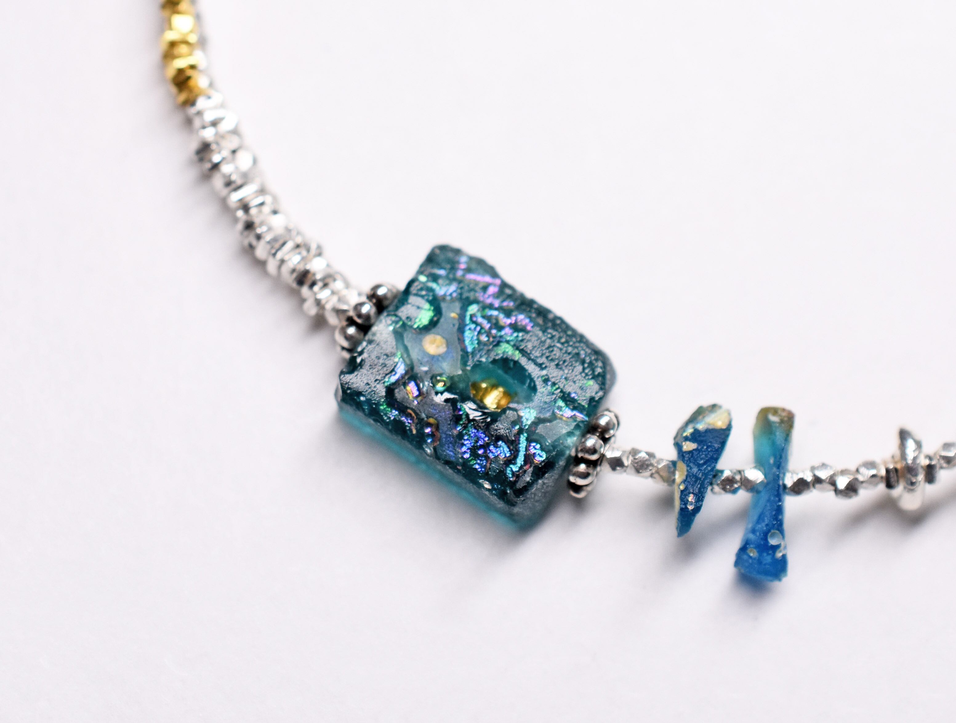銀化の輝きがなくなっても古代のガラス自体の色を楽しめますので、育てる感覚で身に着けていただければ嬉しいです。