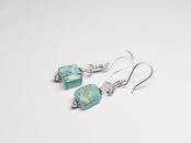 銀化ミントグリーンローマングラスとハーキマーダイヤモンドのピアス