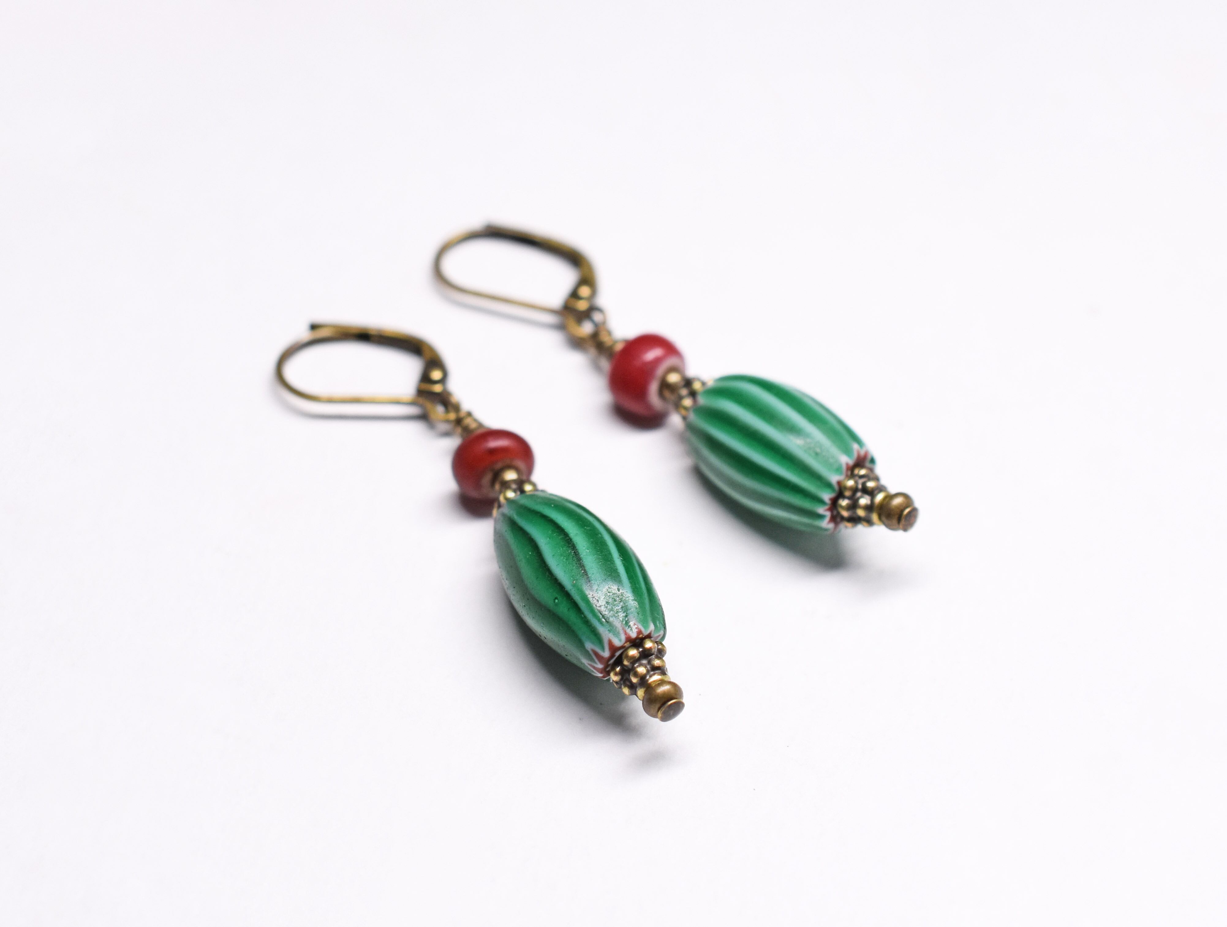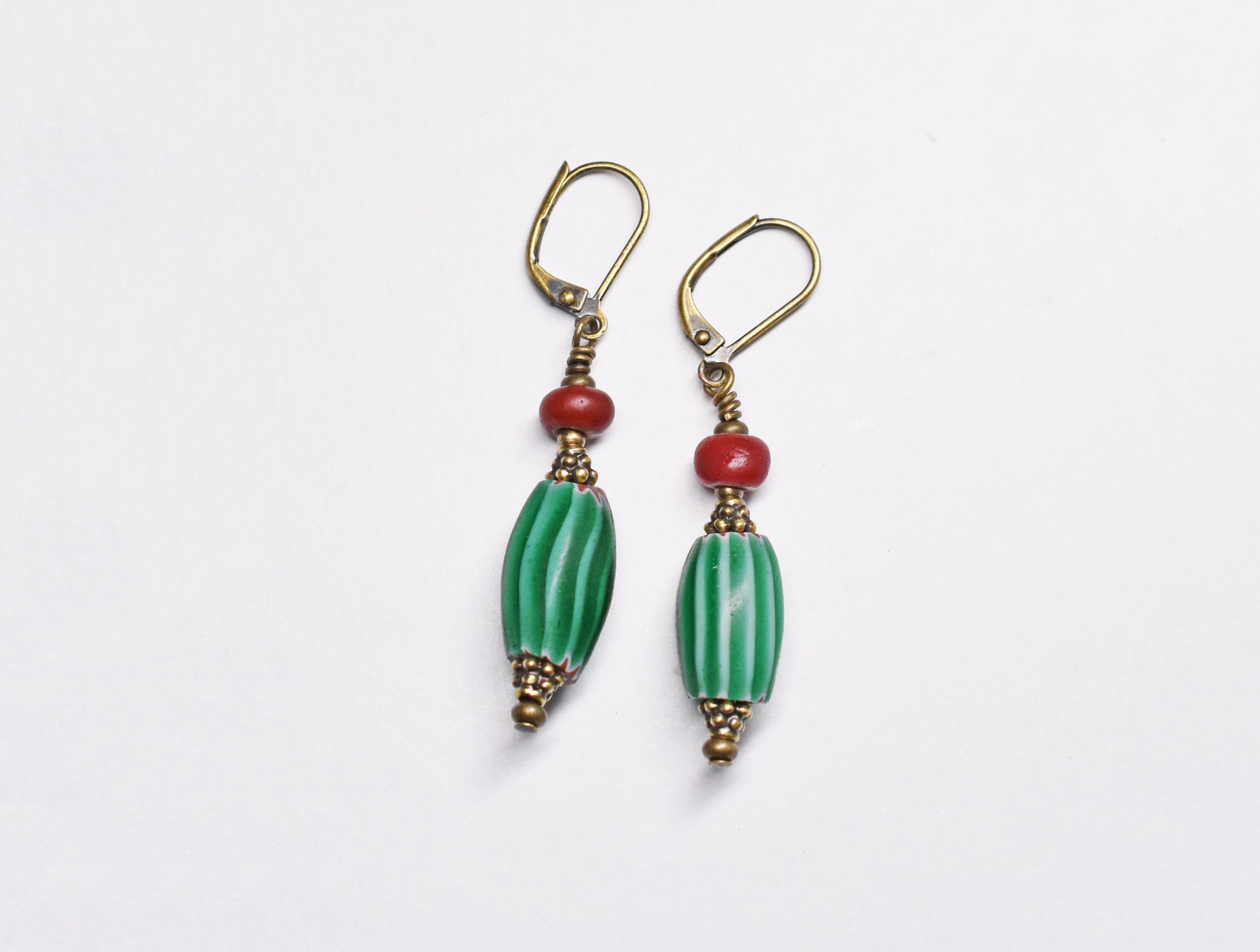 緑色のビーズは「ウォーターメロン」ト呼ばれるベネチアのアンティークビーズです。(20世紀初頭)