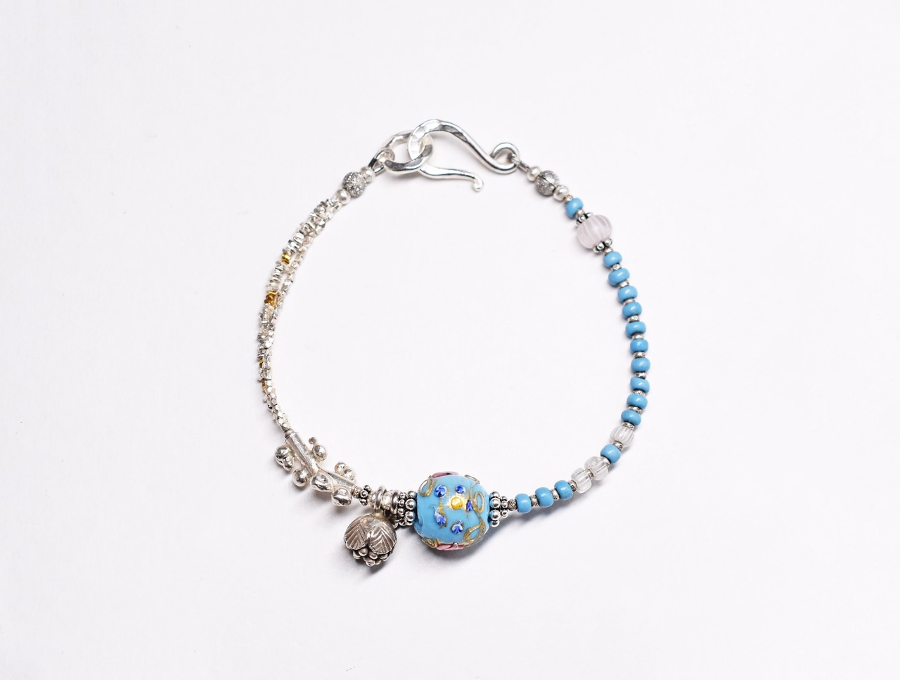 可憐なベネチアのアンティークビーズとカレンシルバーを繋いだブレスです。