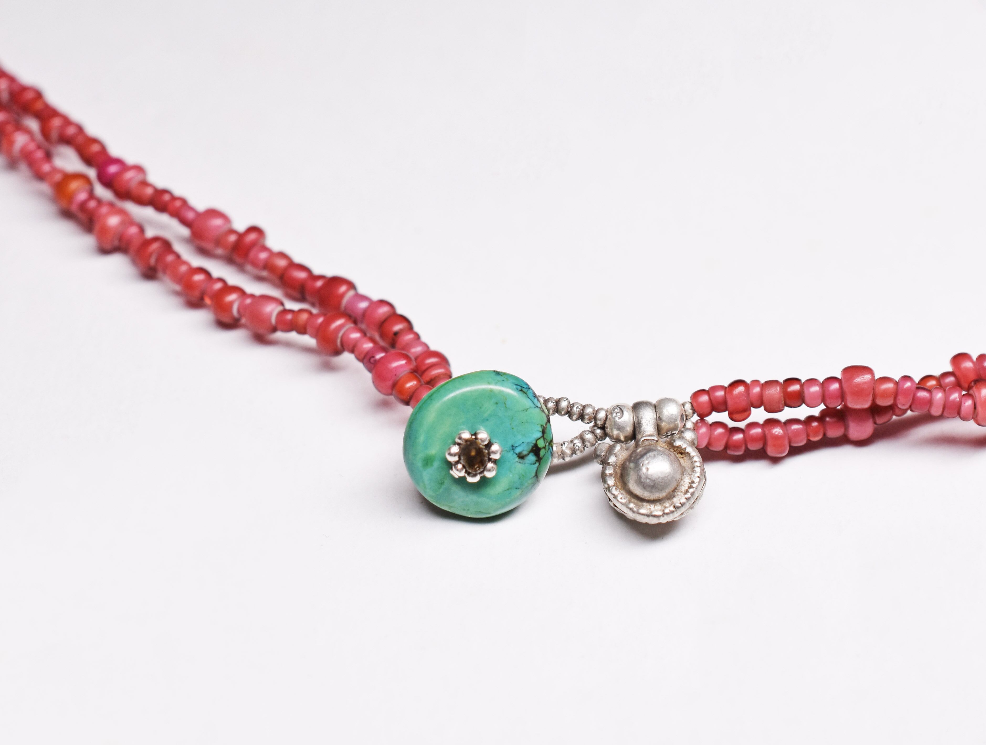 素材:ガラス、真鍮、ターコイズ、ロウビキ紐