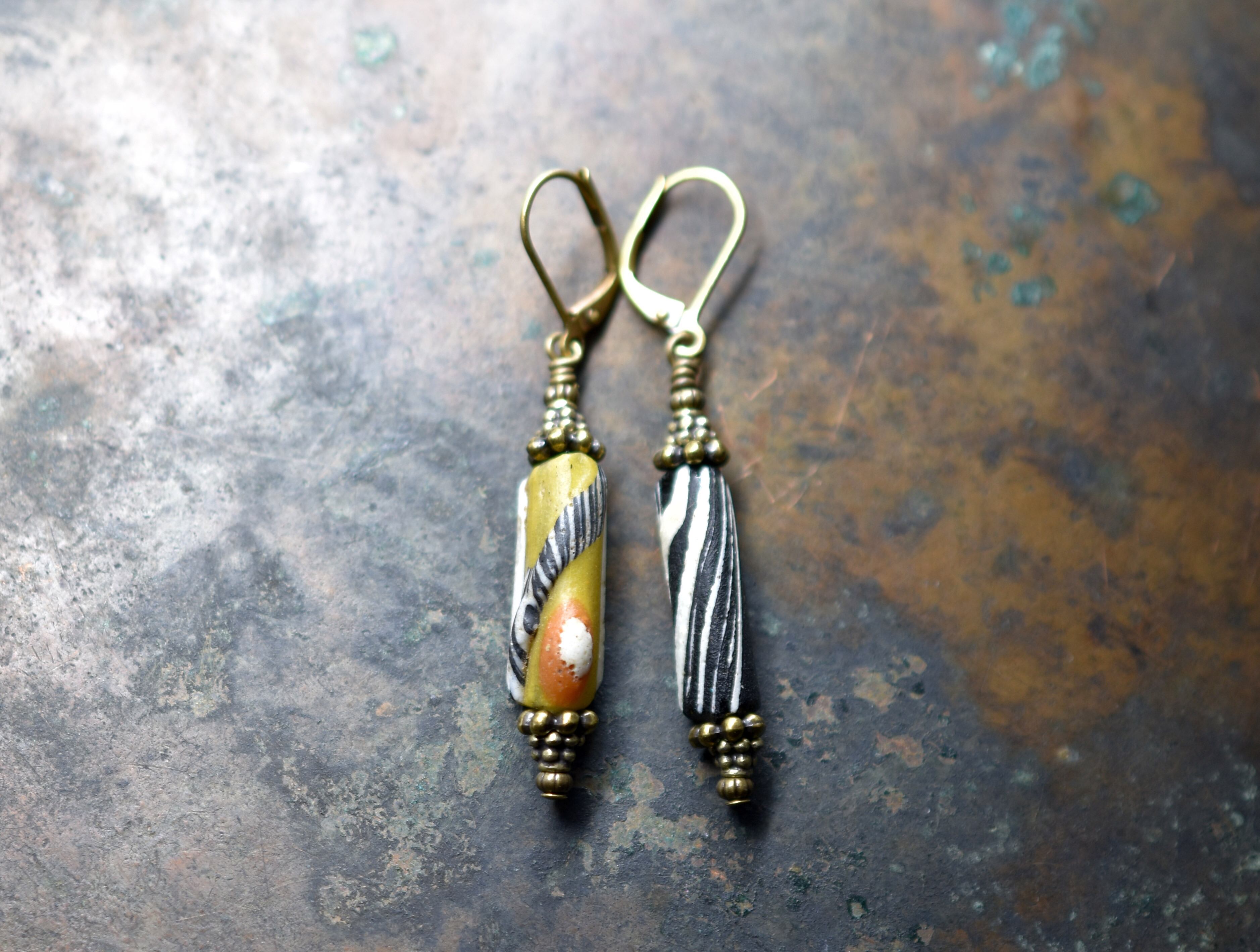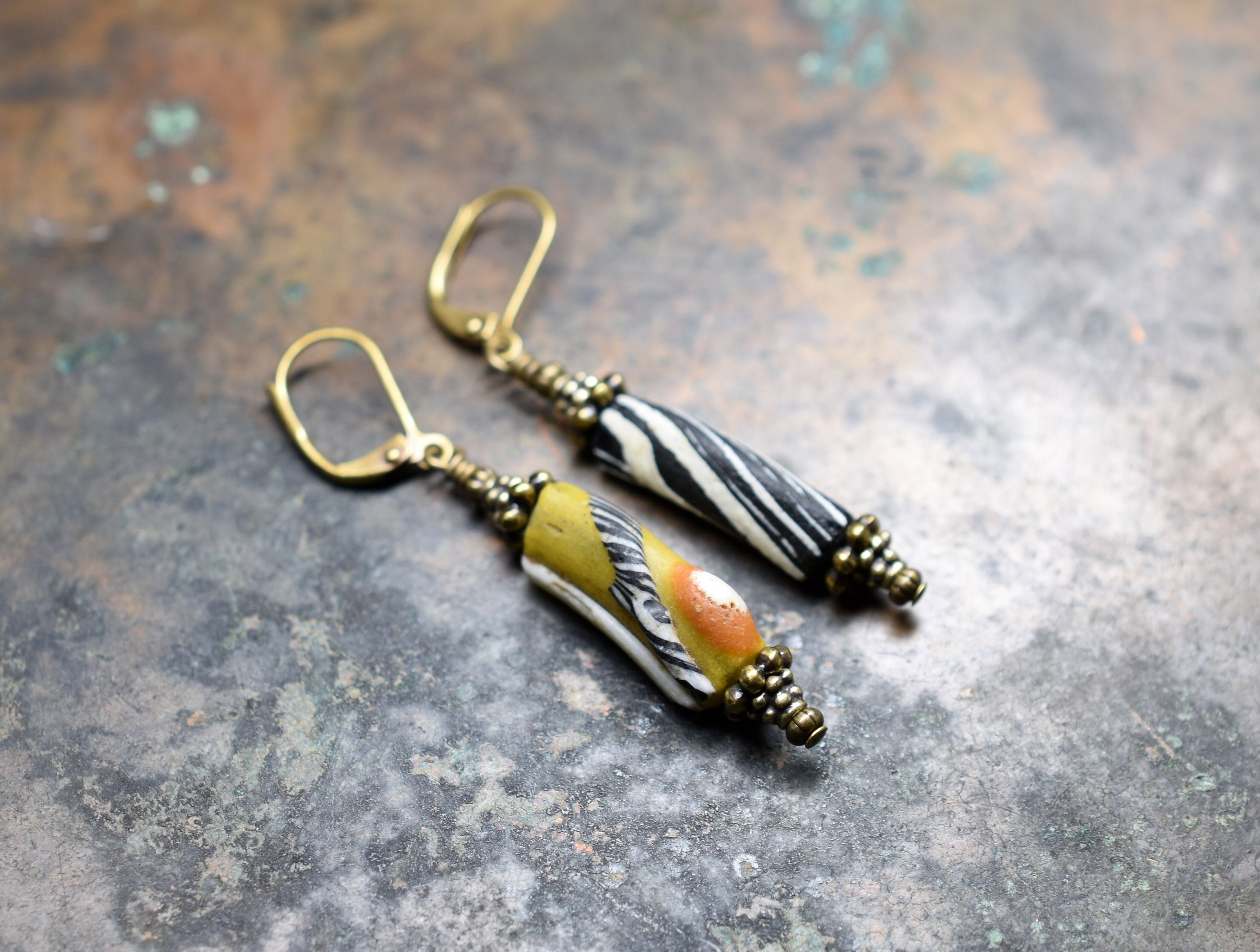 モザイク模様ローマングラスのゼブラ柄アンシメトリーピアス