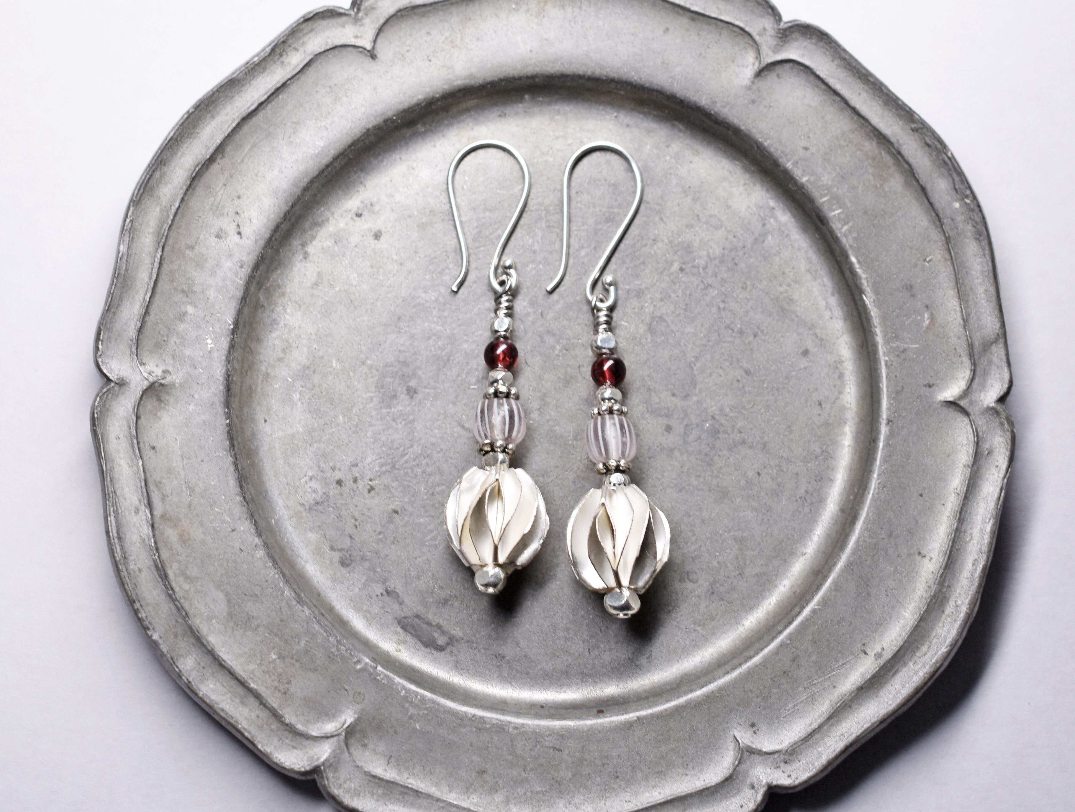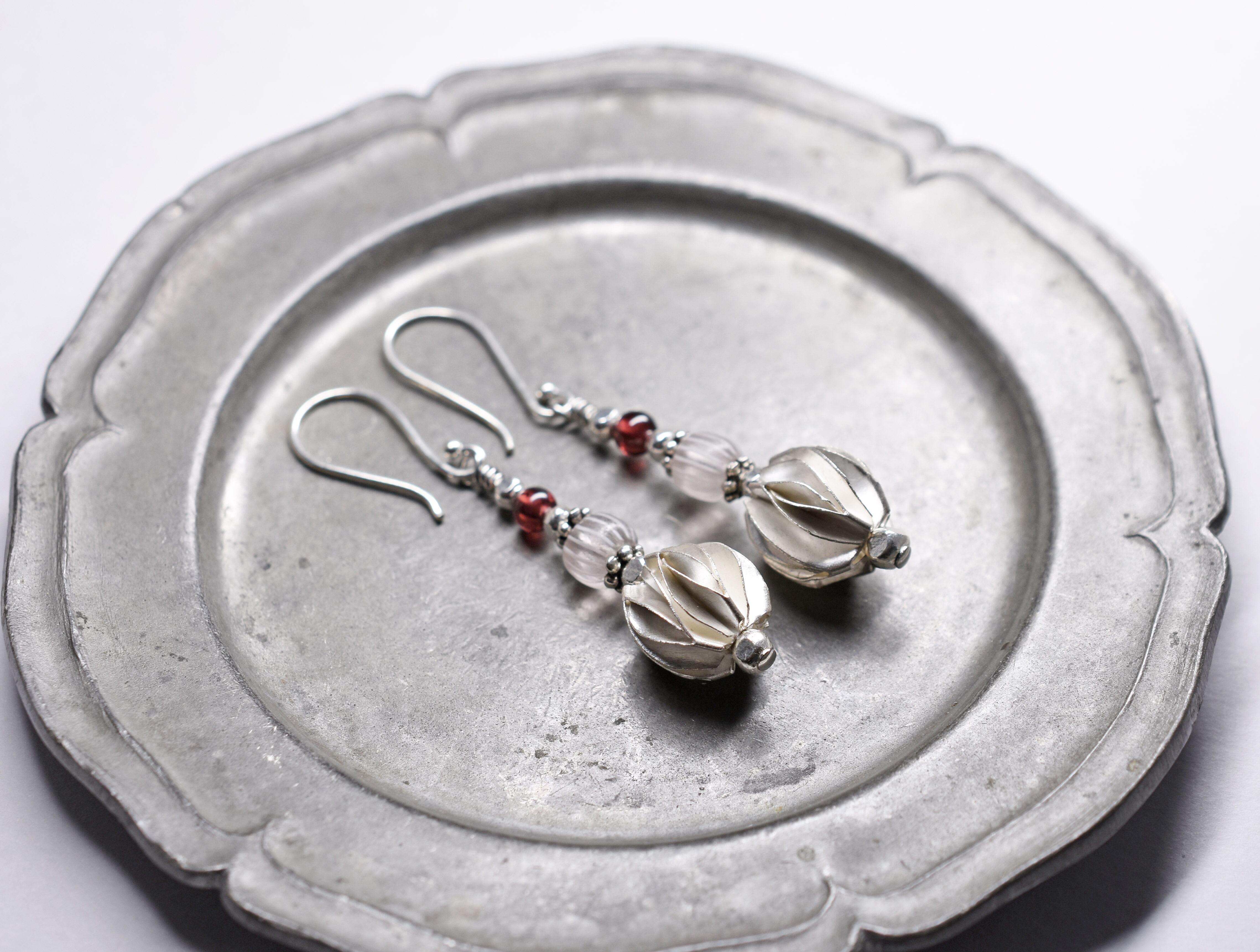 ひらひらカレンシルバーとグーズベリー、ガーネットのピアス
