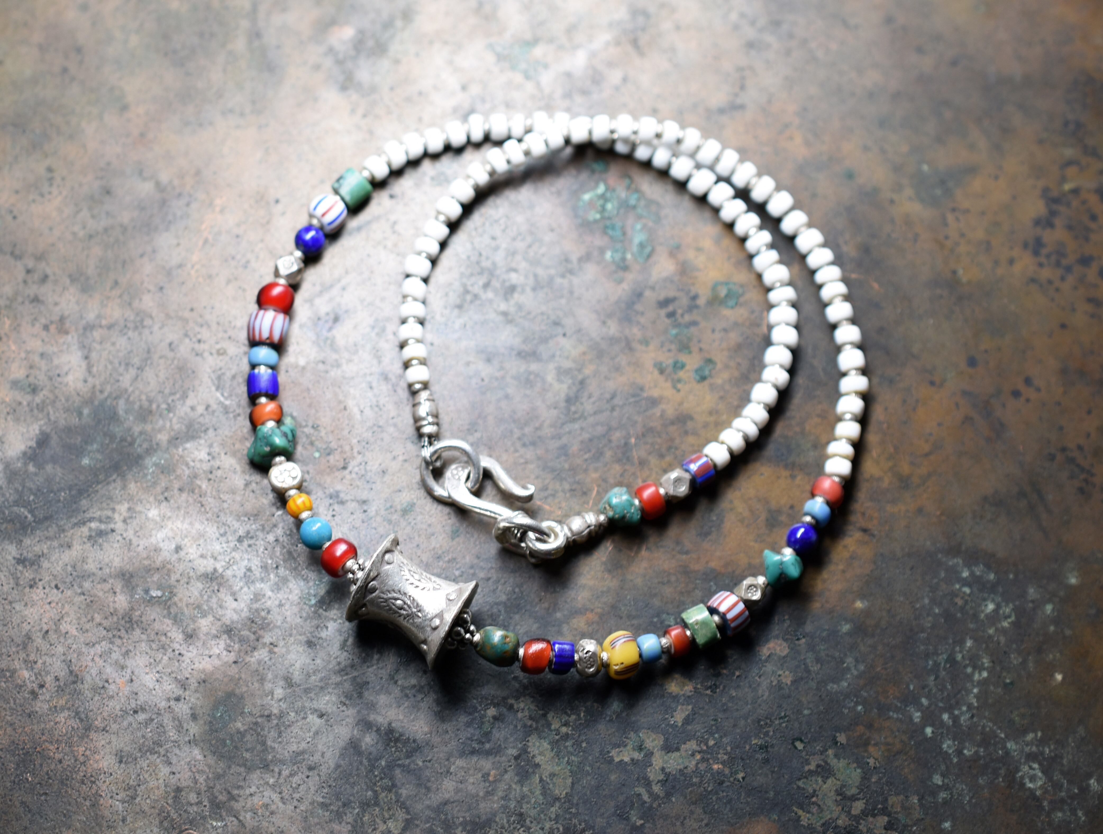 クレイジーミックスアンティークベネチアビーズとカレンシルバーのネックレス