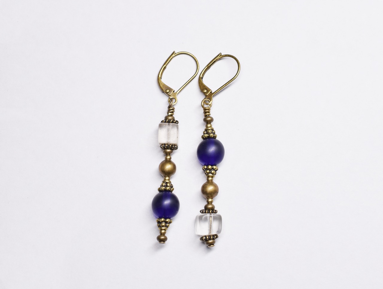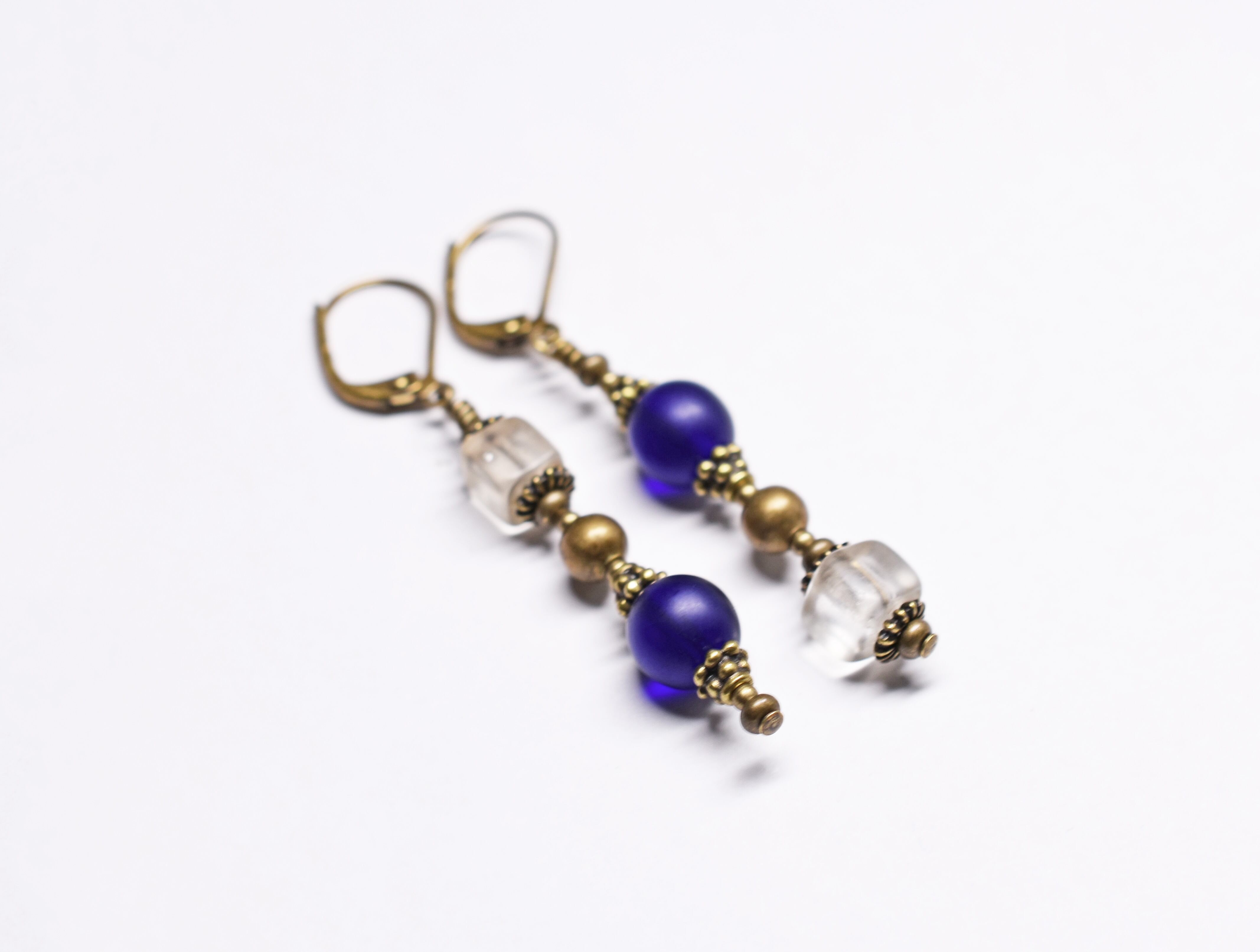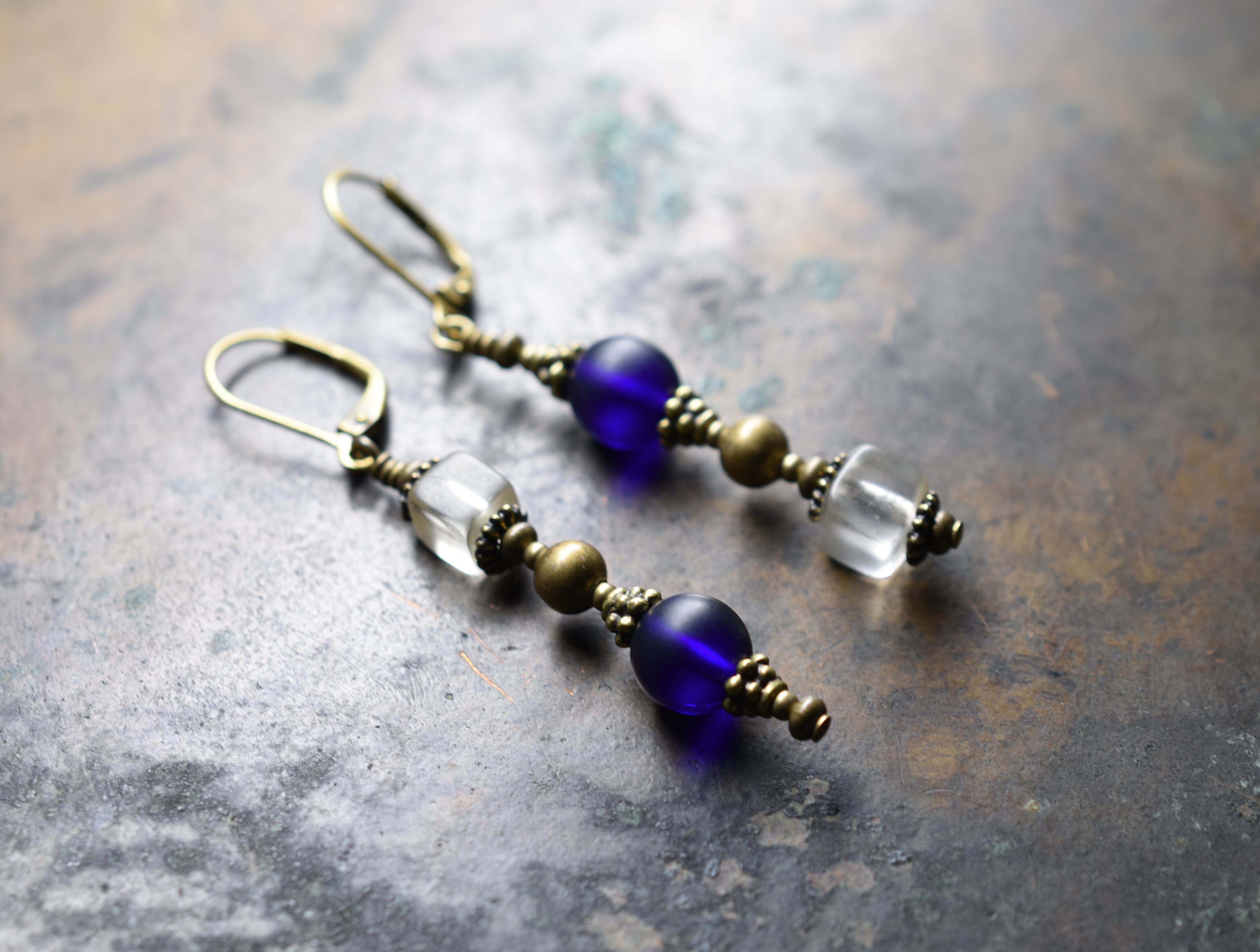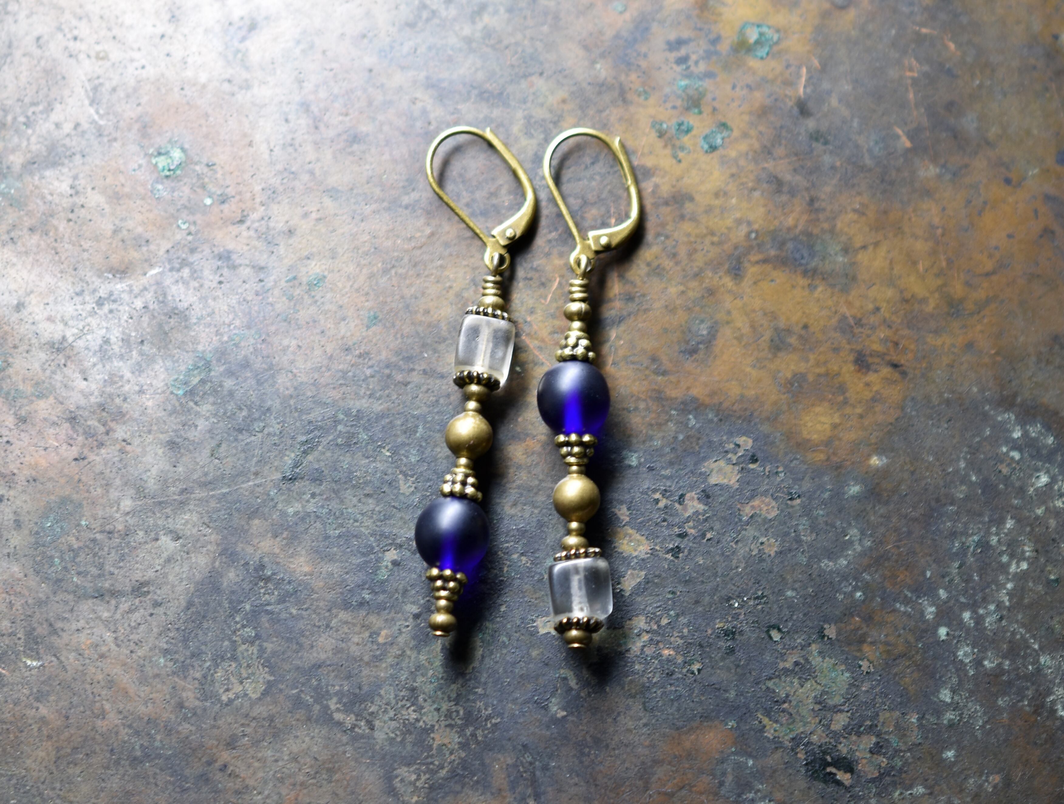 アンティークのボヘミアビーズと、ドイツのヴィンテージビーズ、ヴィンテージブラスを繋いだピアスです。