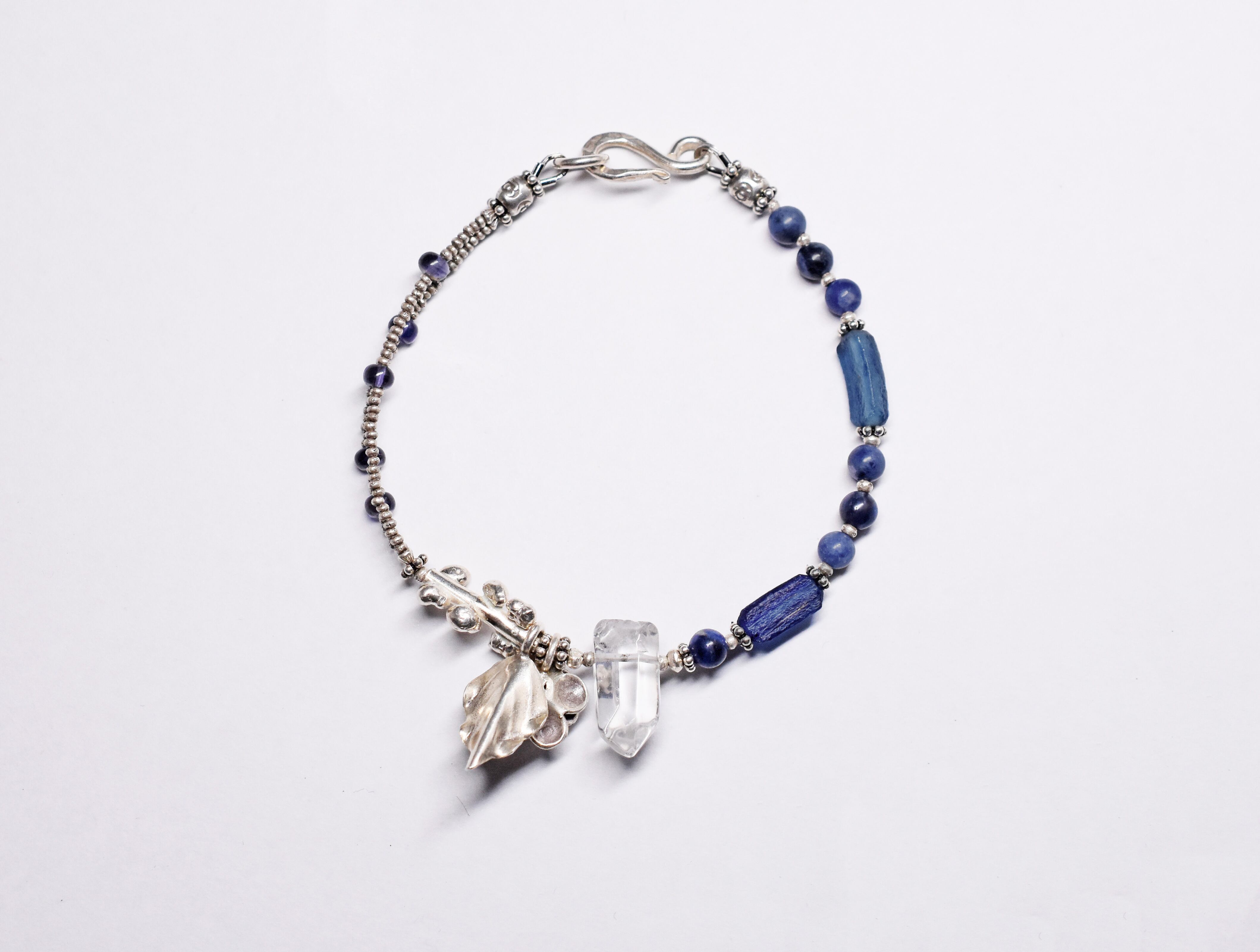 素材:ヒマラヤ水晶、ガラス、カレンシルバー、ソーダライト、アイオライトワイヤー