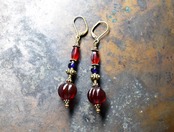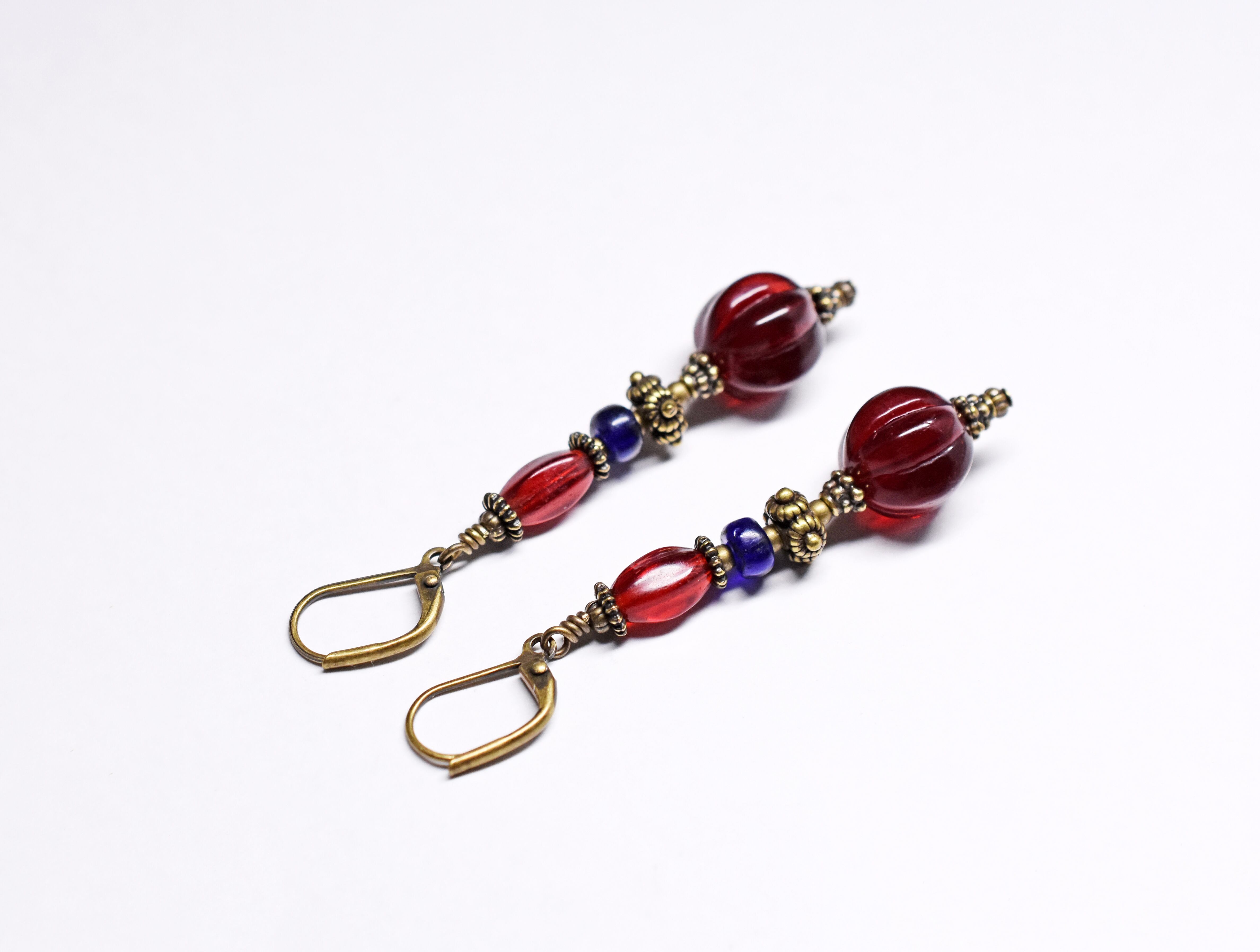 深紅ヴィンテージ&アンティークビーズと瑠璃色ビーズのピアス