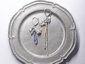 デュモルチェライトインクォーツと、しゃらりとしたカレンシルバチャーム、アンティークビーズを繋いだアンシメトリーなピアスです。