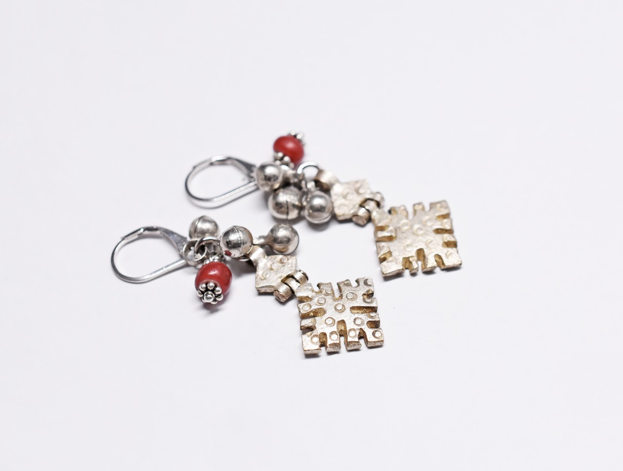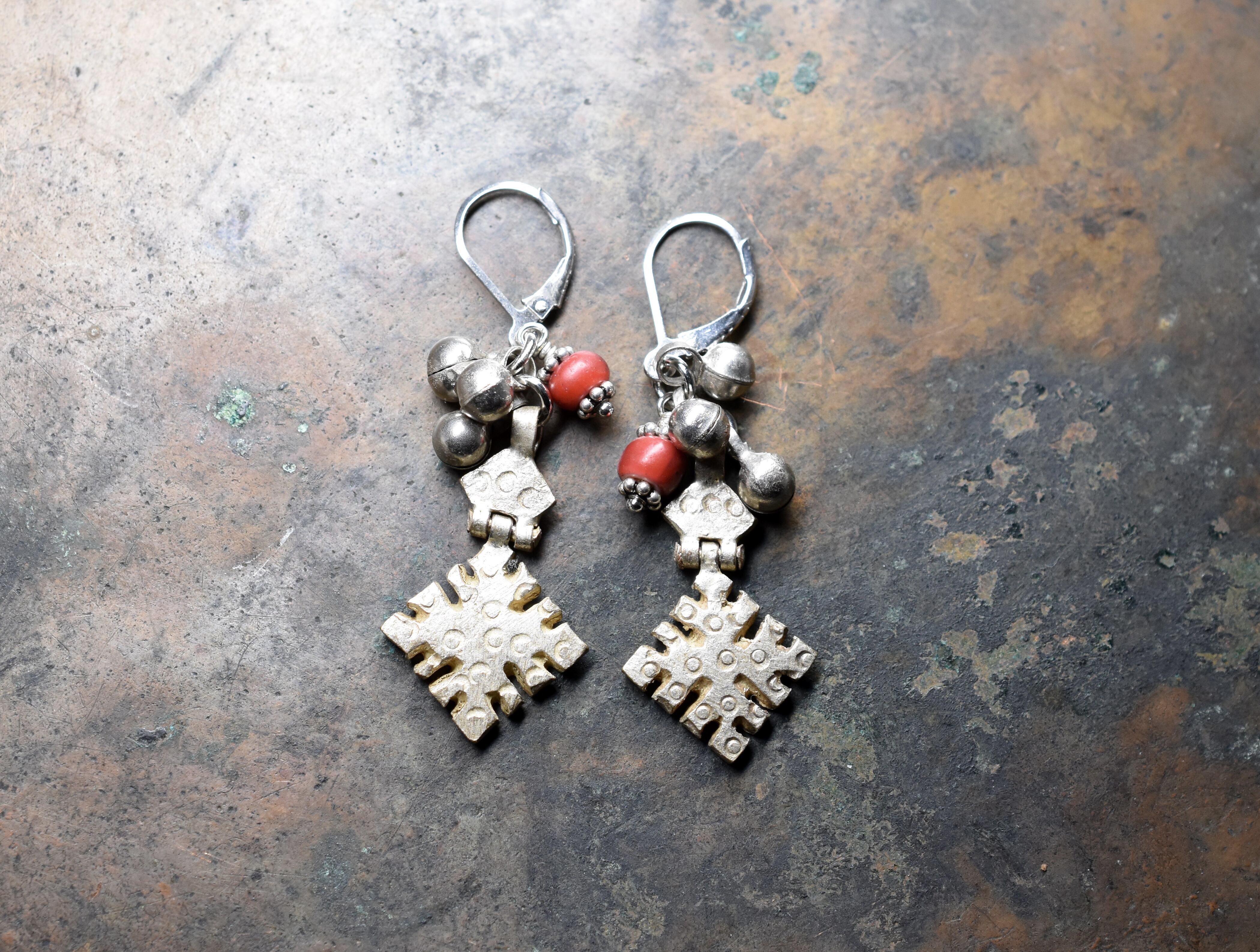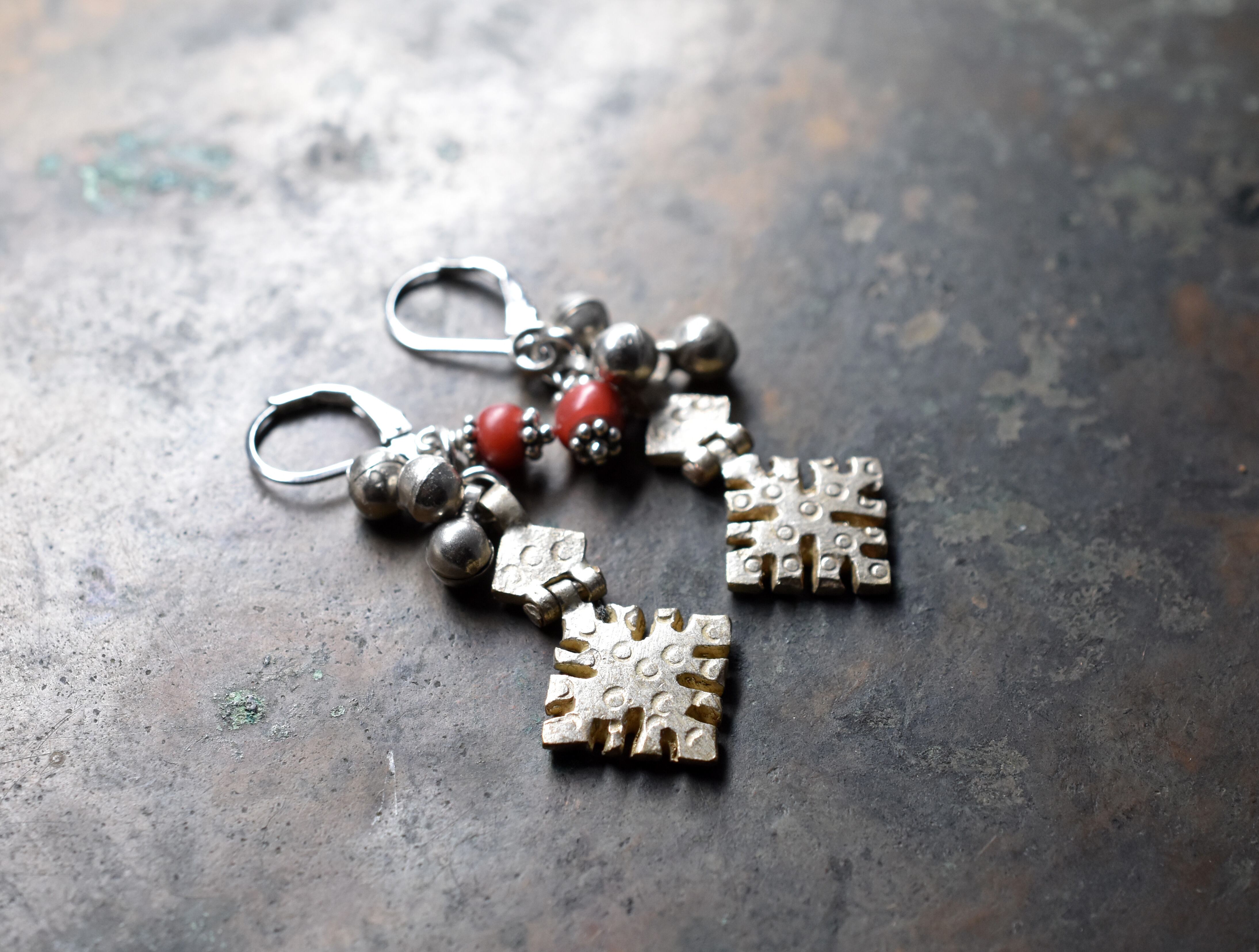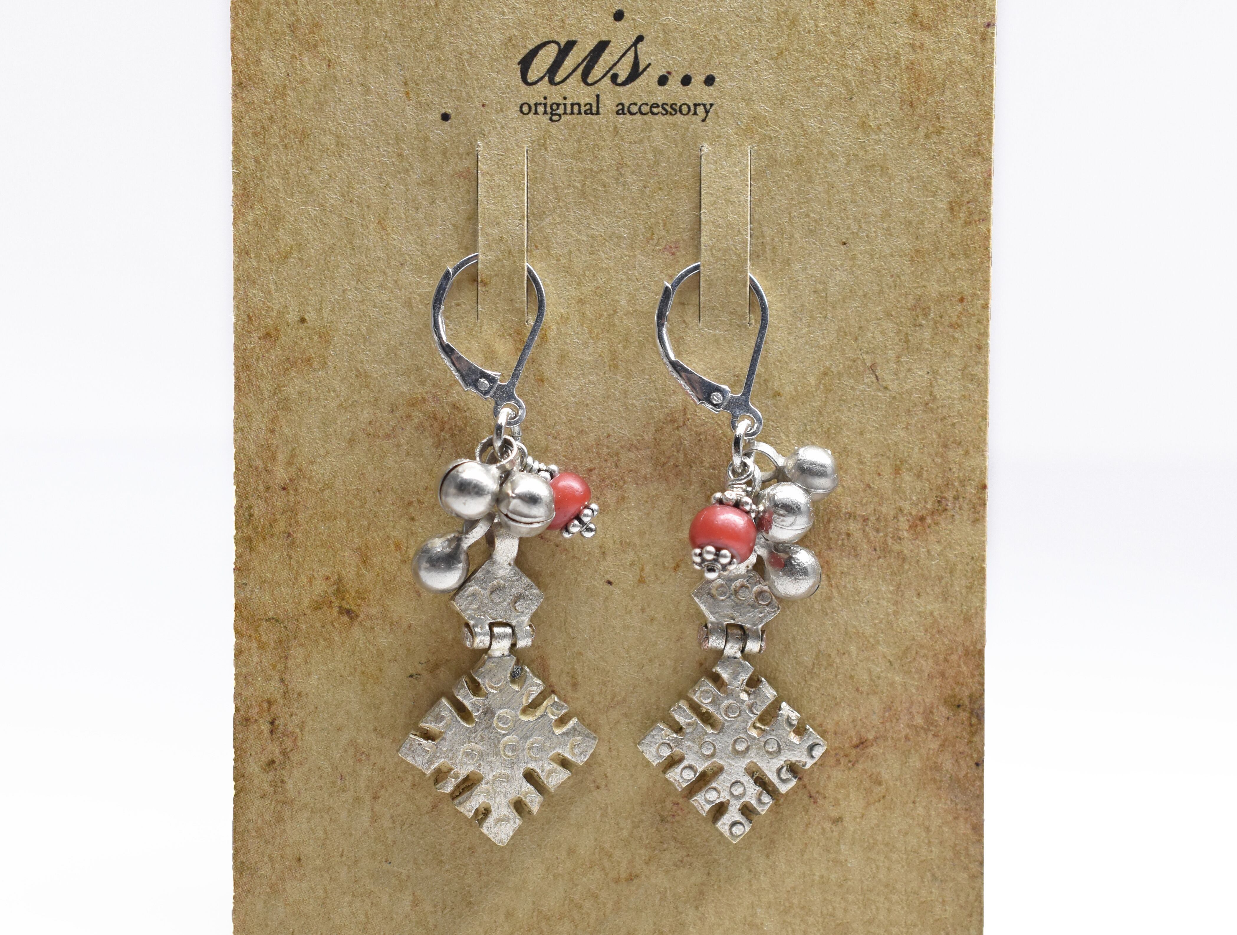 エチオピアンミクロスと金赤ホワイトハーツ、民族鈴のピアス