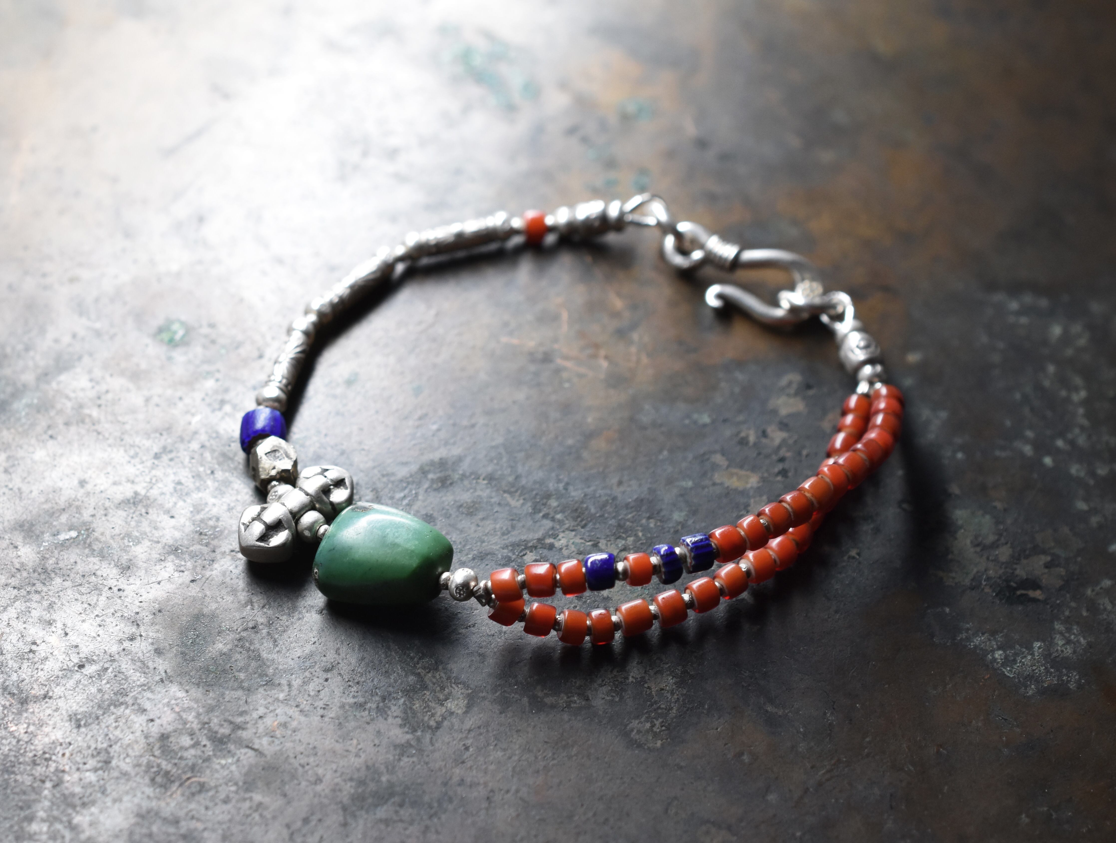チベタンターコイズとドルジェ、飴色ホワイトハーツ、カレンシルバーのブレス