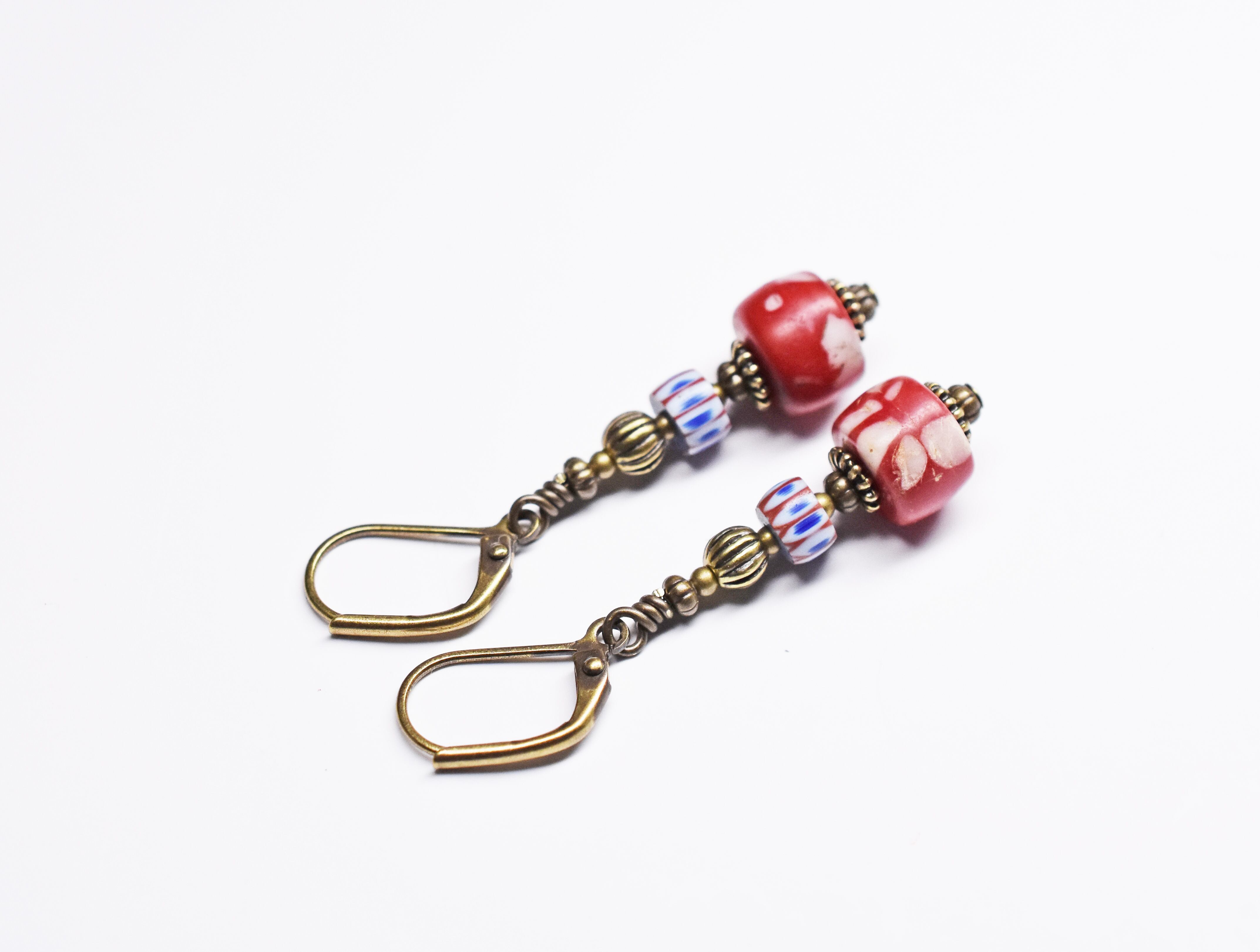 アンティークビーズの味わいと色鮮やかさが楽しめるちょっと小ぶりなピアスです。