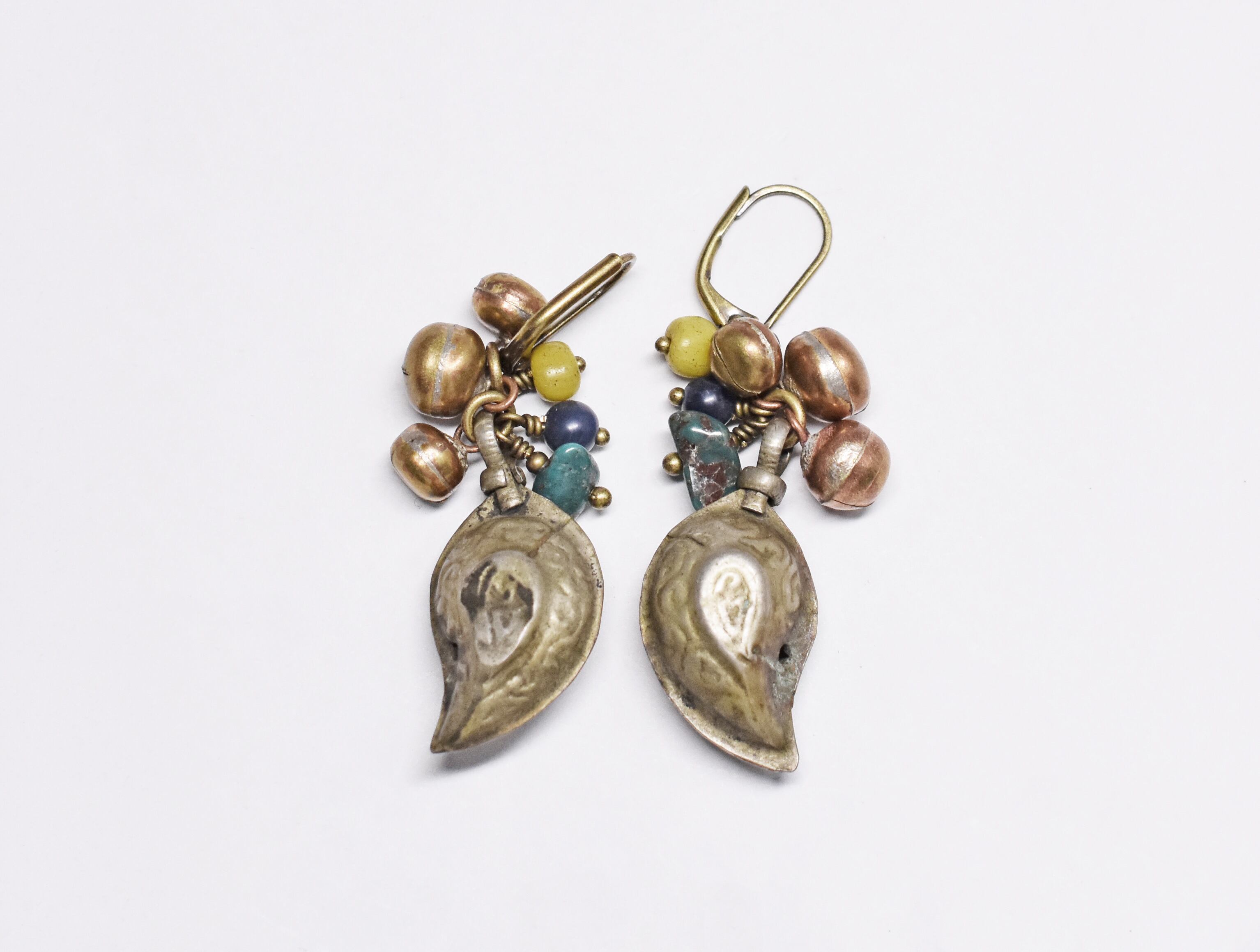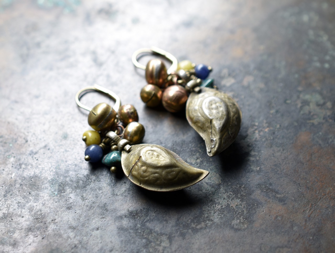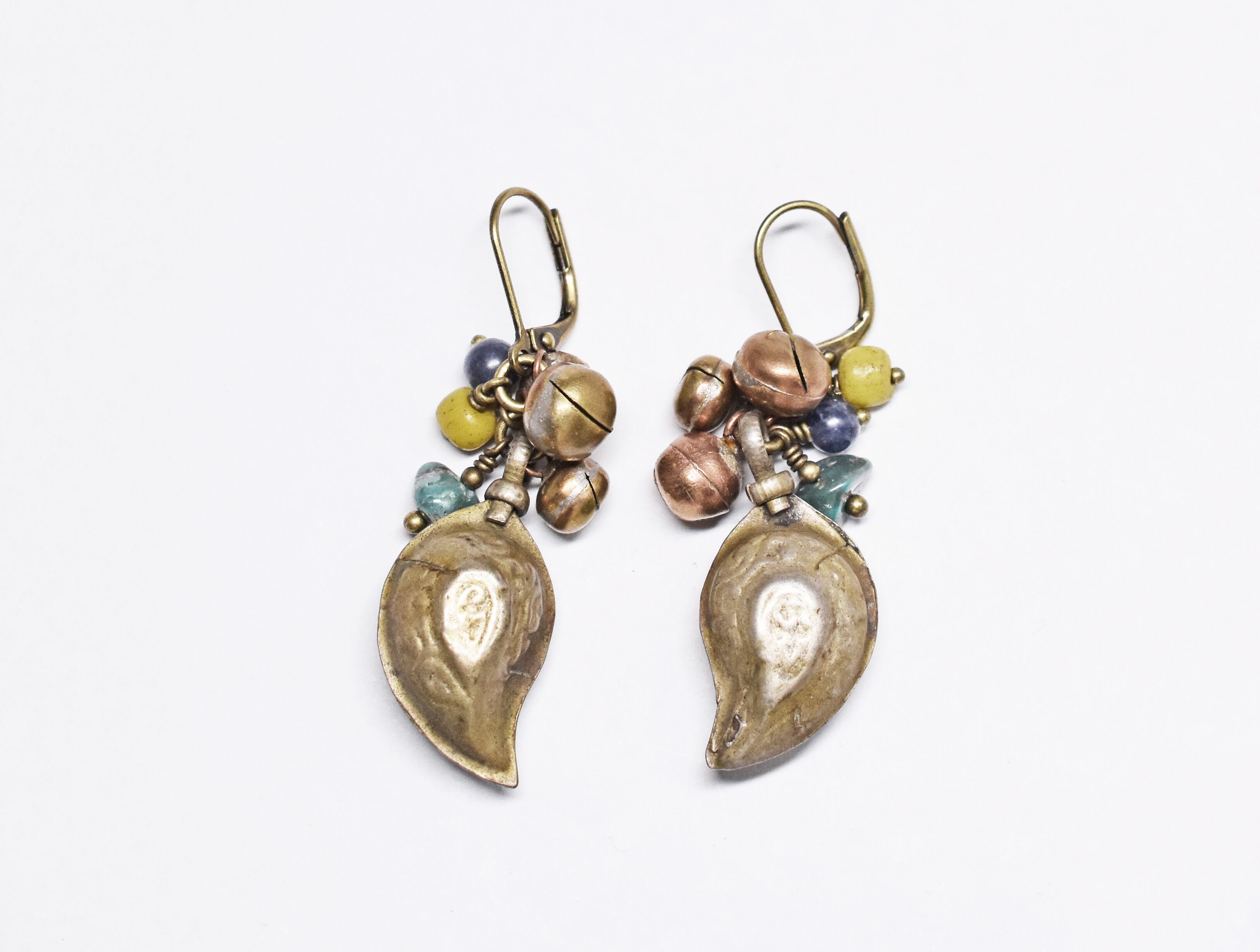 アフガニスタンペイズリーと鈴、アンティークビーズと天然石のピアス