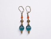 ドイツのヴィンテージビーズとブラスビーズ、ファイアーアゲートを繋いだピアスです。