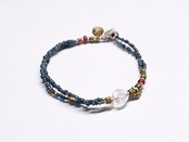 古代水晶とインディゴブルービーズ、金赤ホワイトハーツ、オリッサブラスの2連ブレス