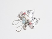 葉っぱと、蕾とお花のカレンシルバーと、グーズベリーと2種類の天然石を繋いだピアスです。