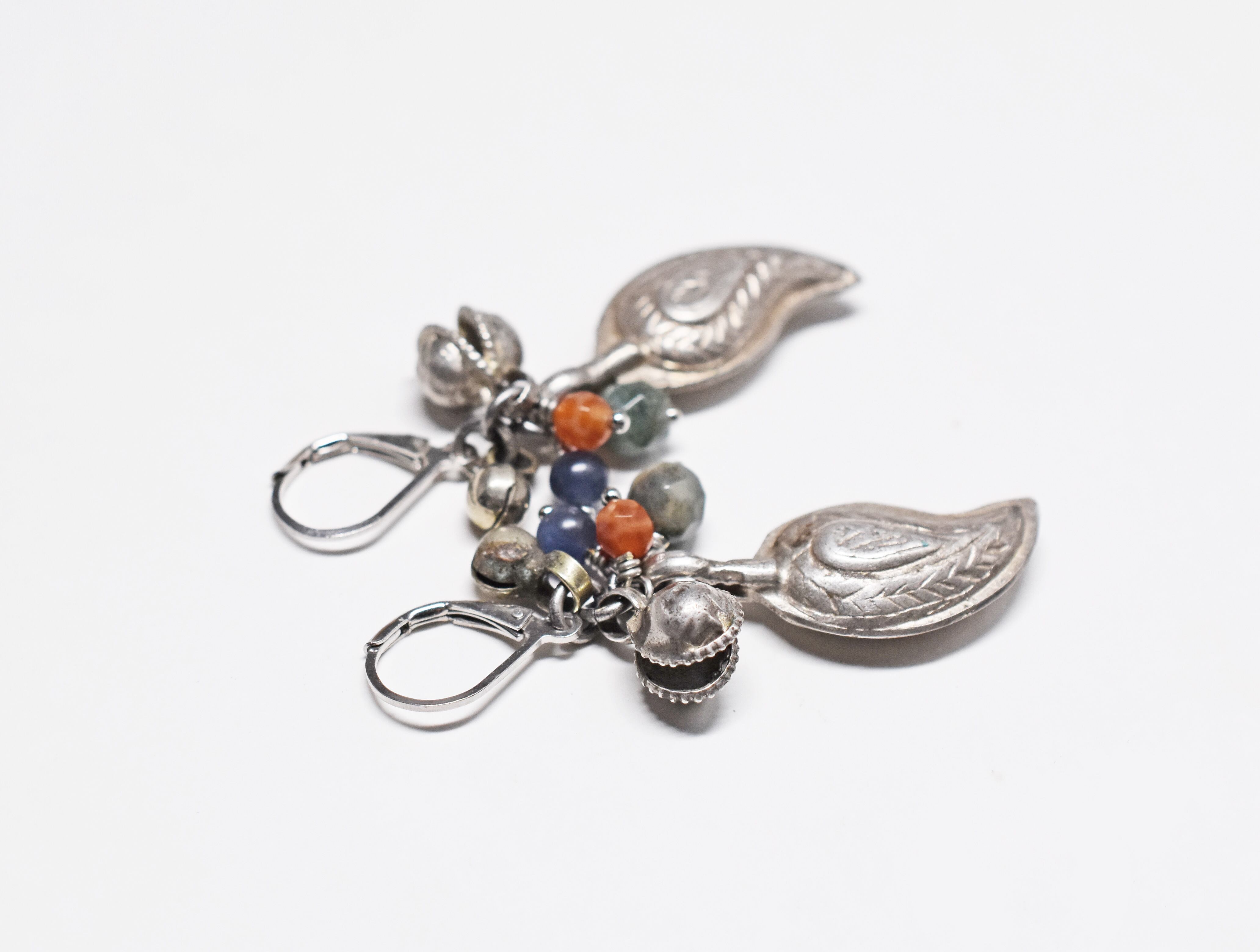 アフガニスタンoldシルバーと3種類の天然石のピアス