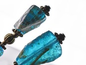 スカイブルーなどのローマングラスを繋げたアンシメトリーなピアスです。