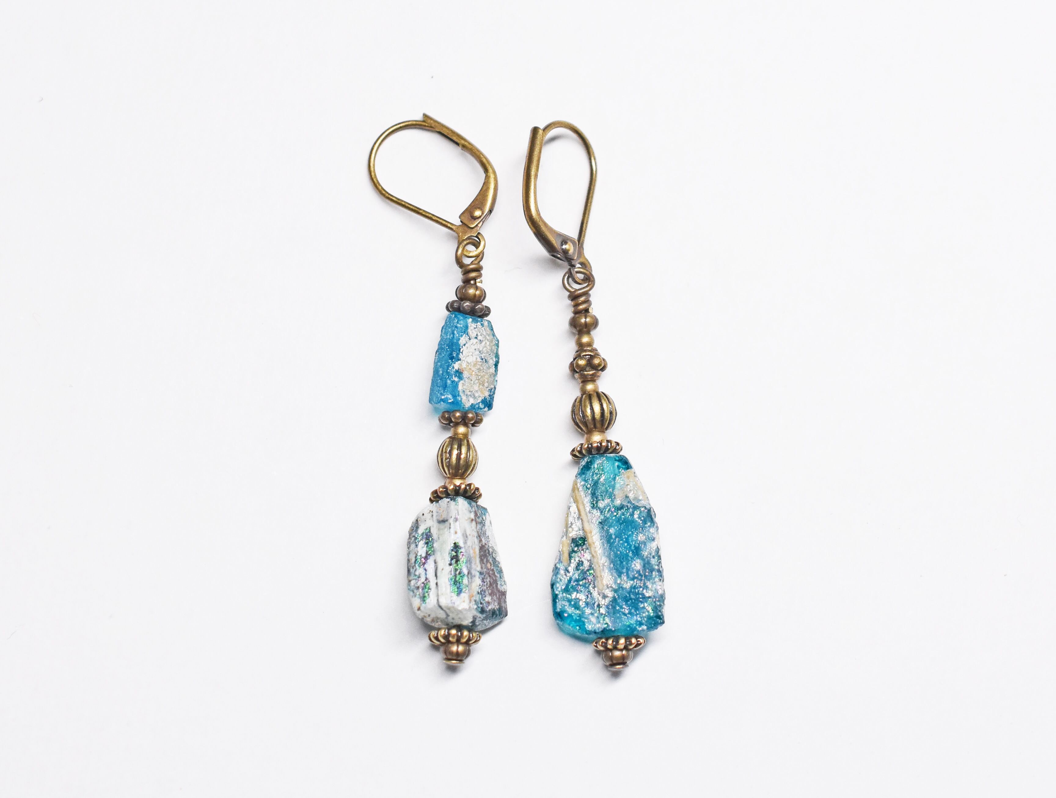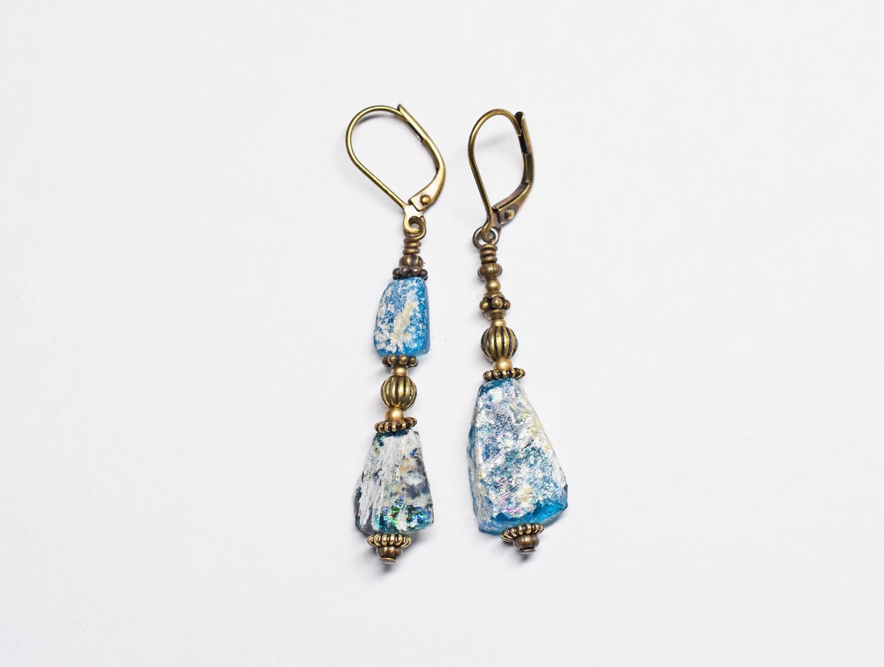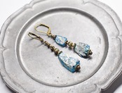 銀化スカイブルーローマングラスのアンシメトリーピアス