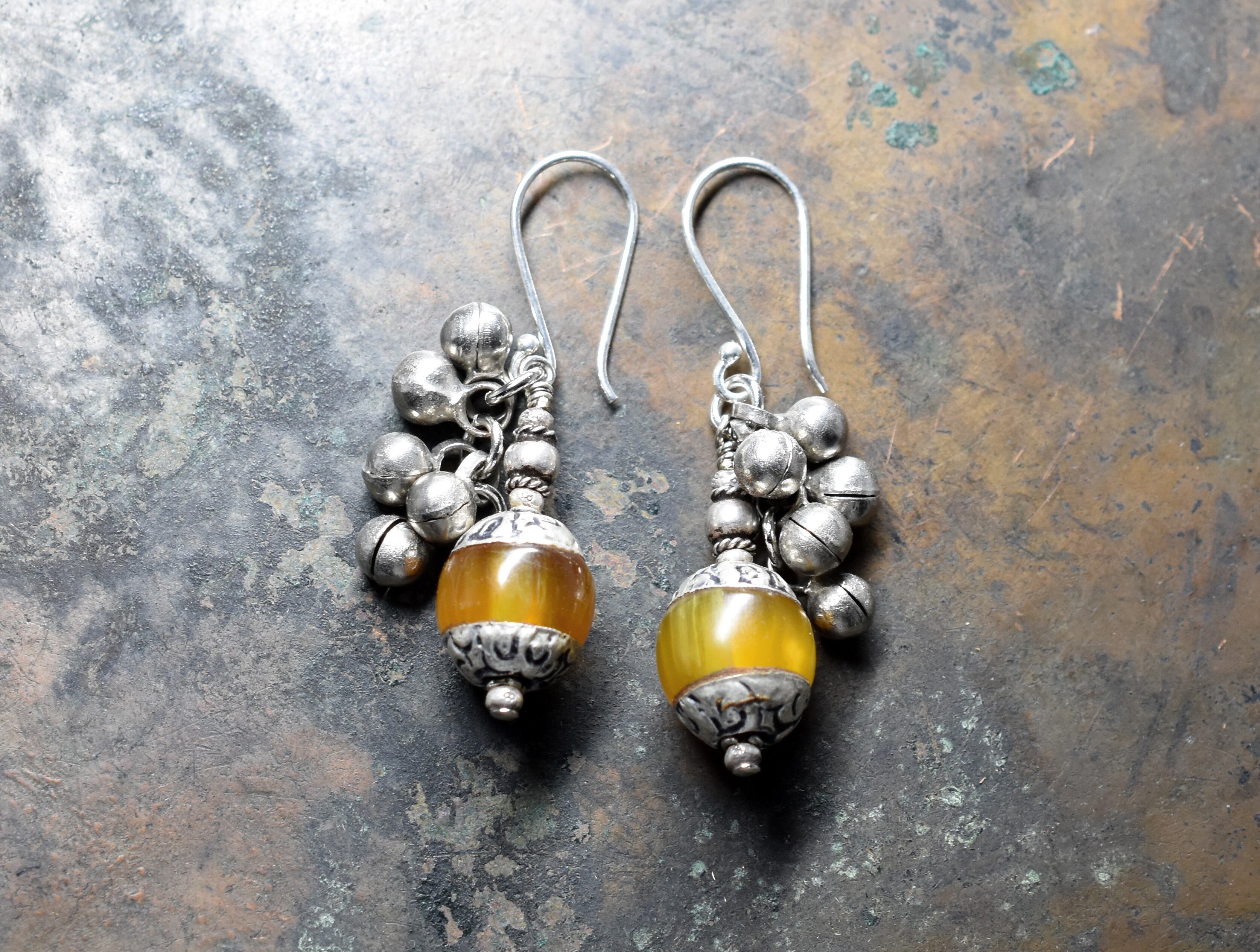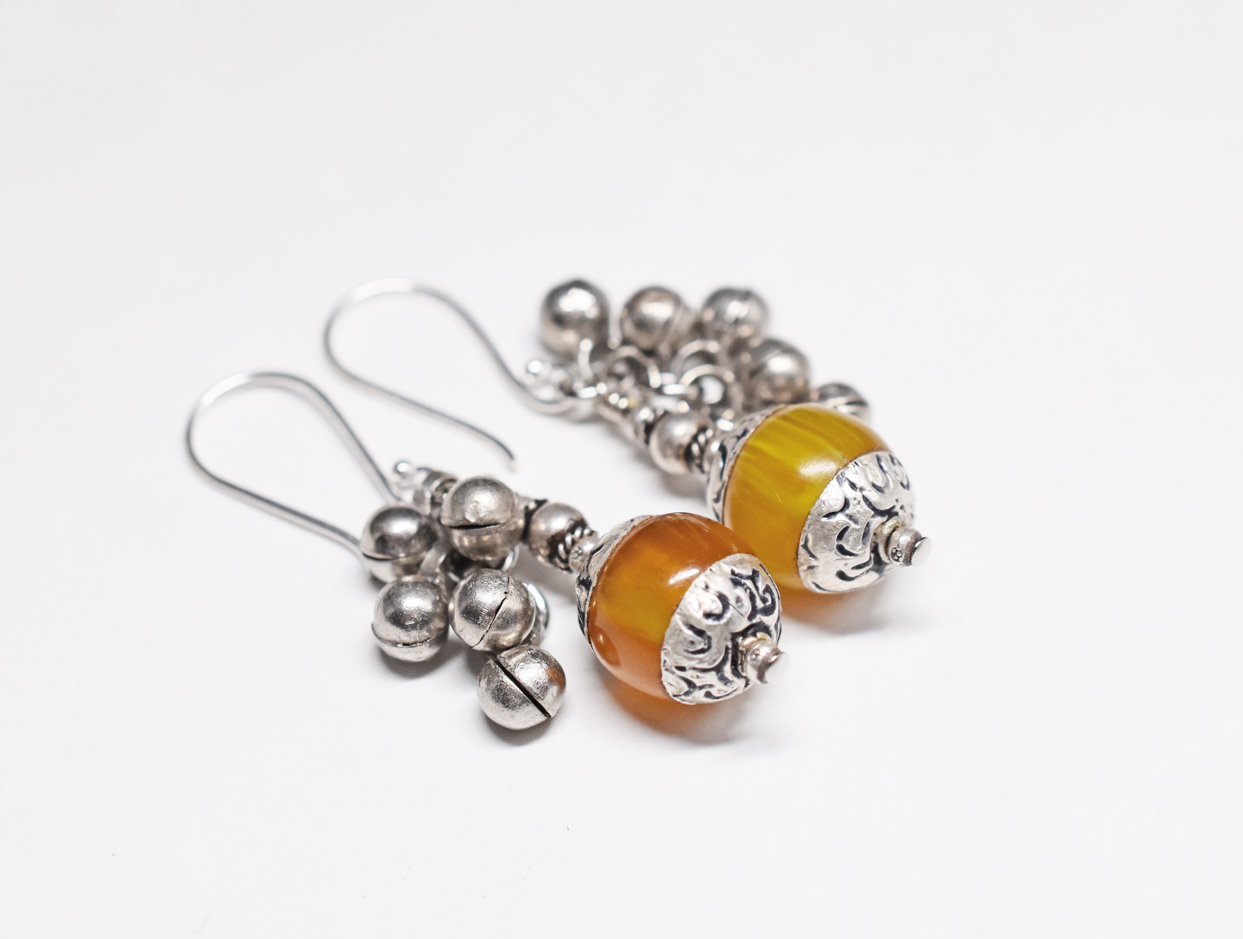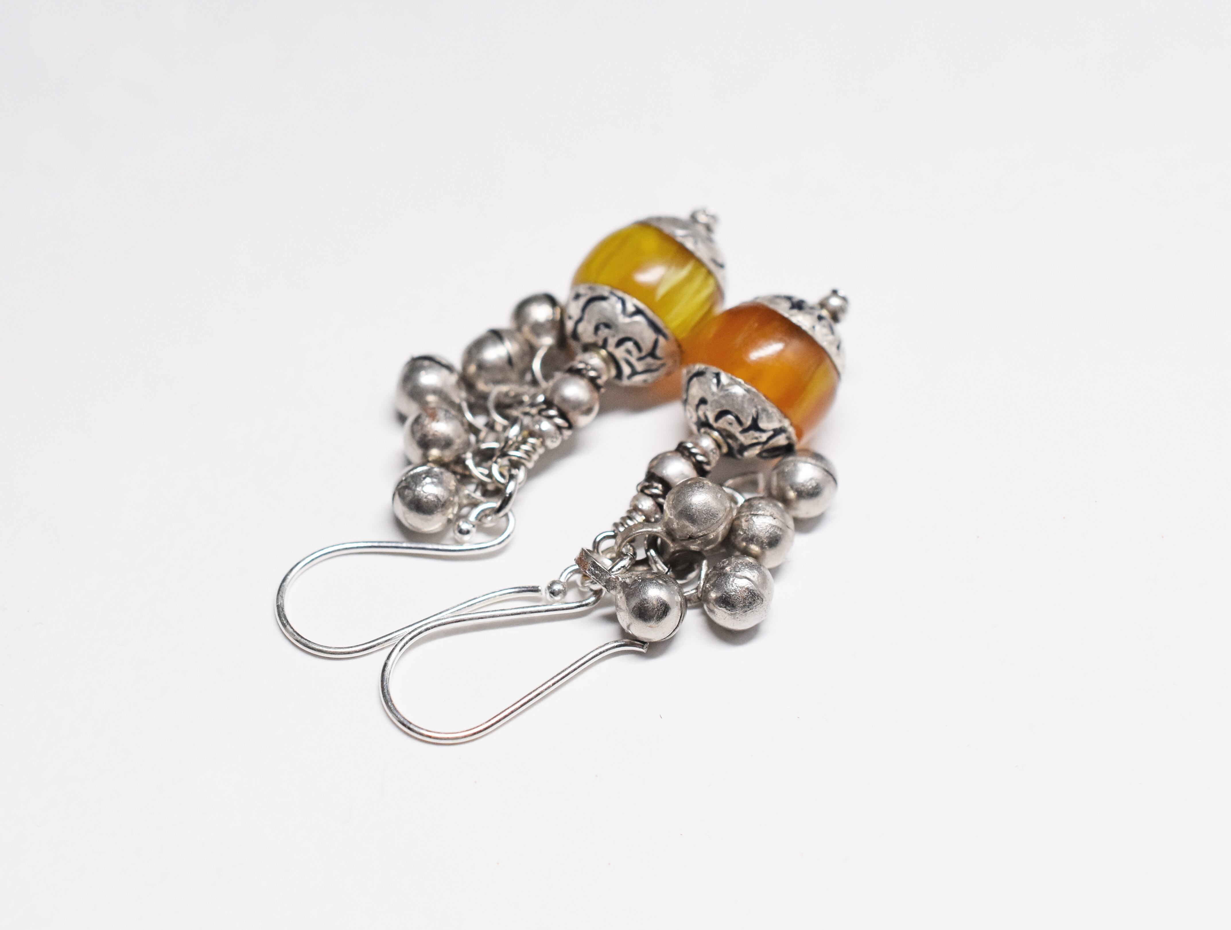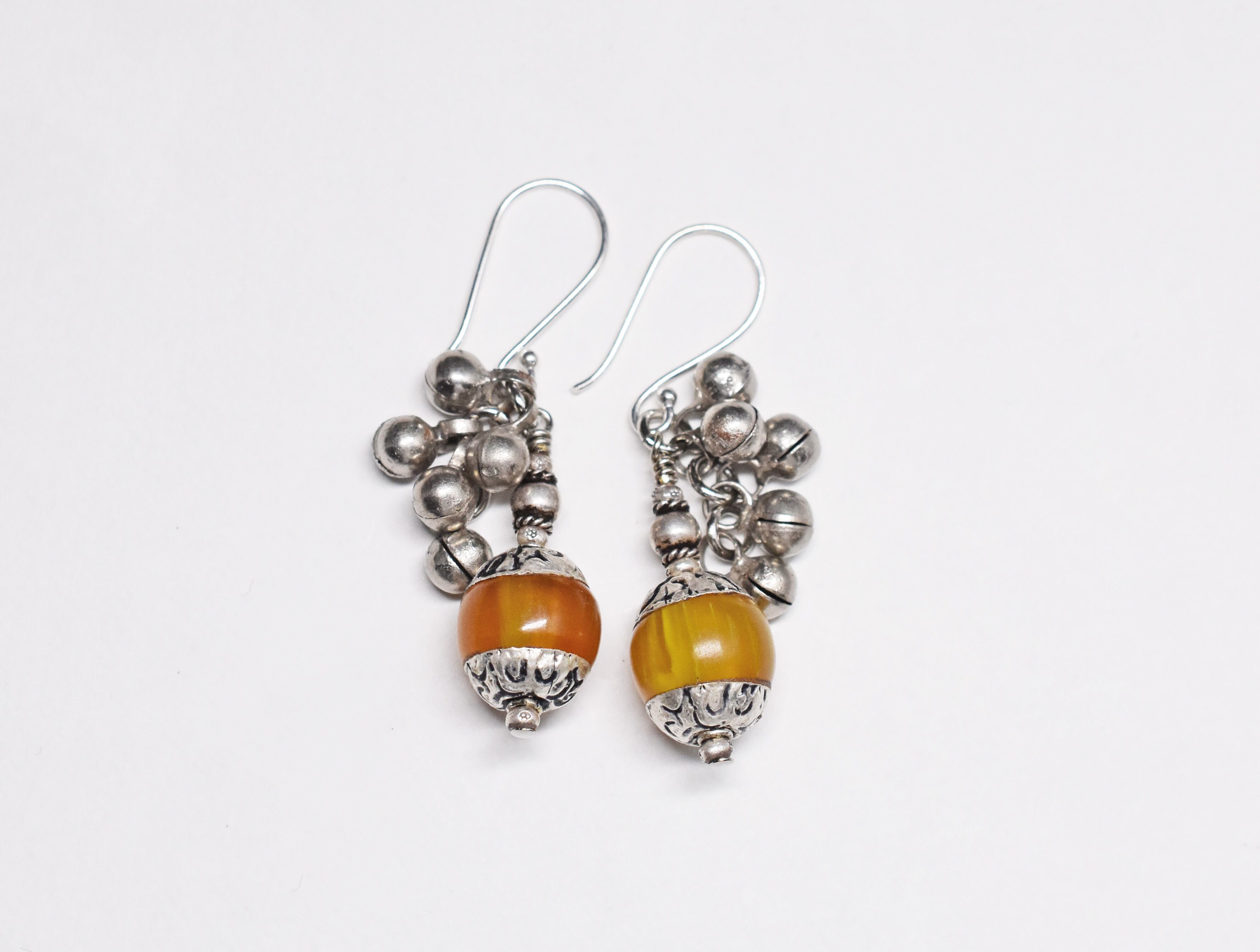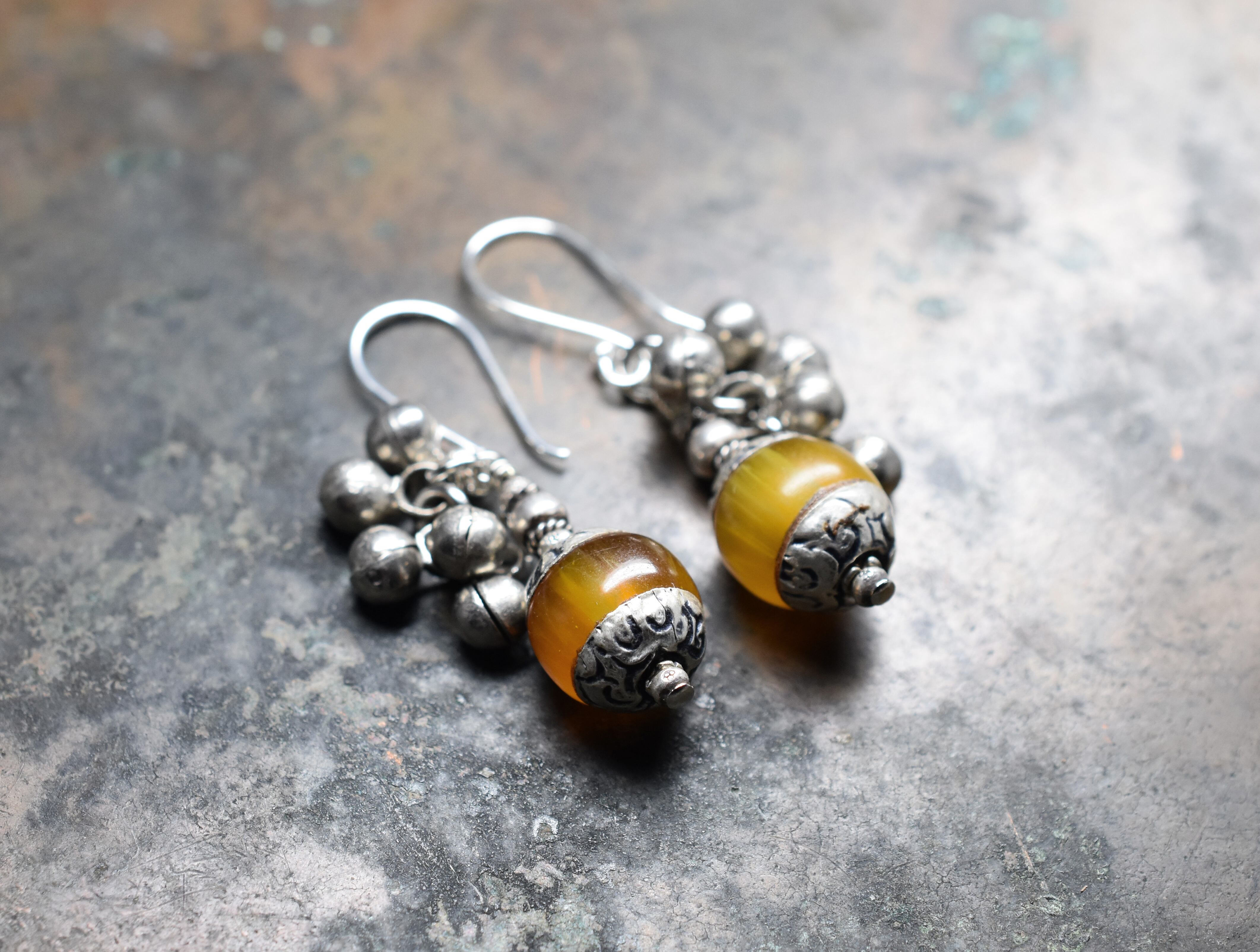 琥珀色アフガニスタンパーツとたわわな鈴のピアス