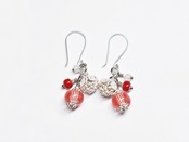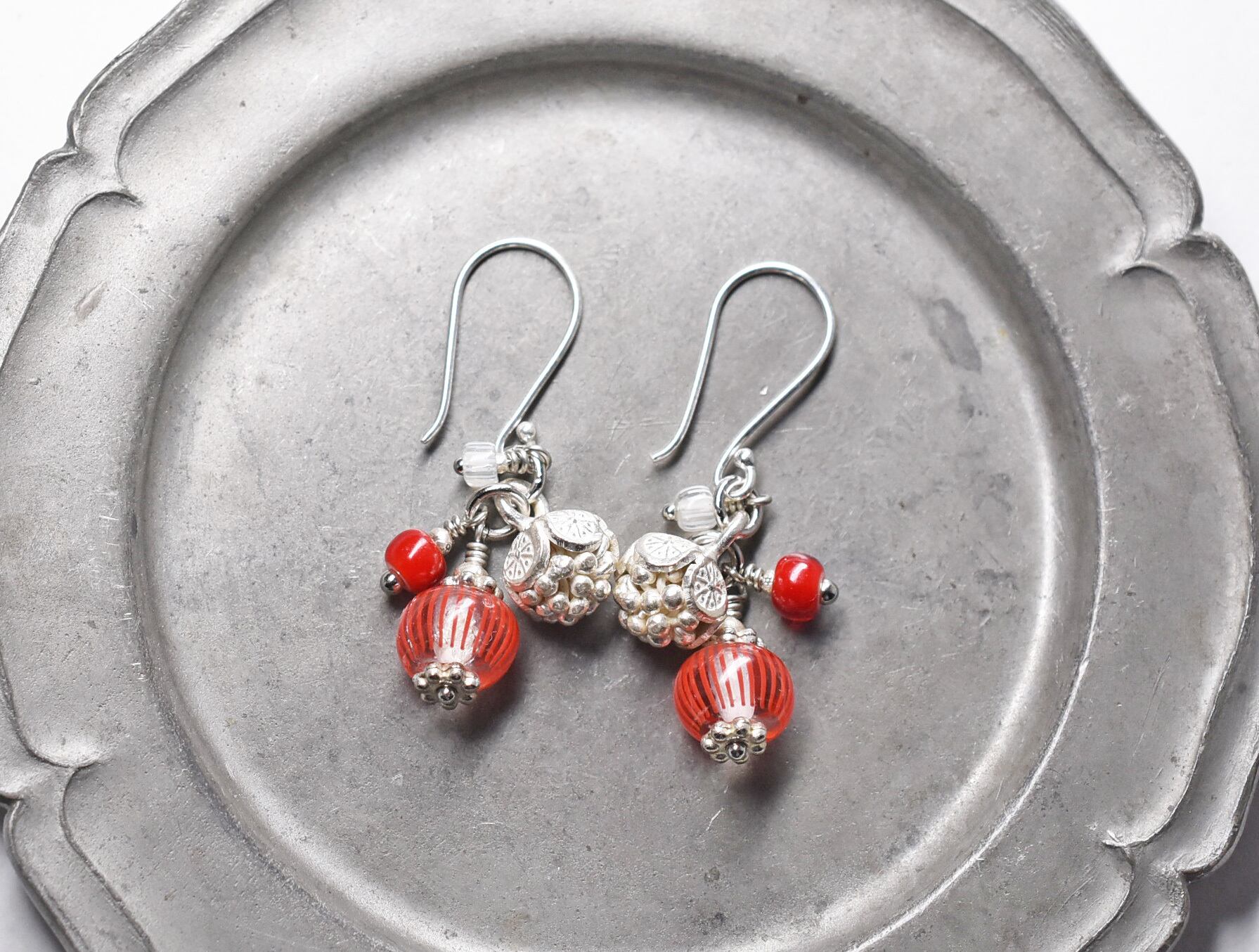 林檎みたいなアンティークビーズにコロンと丸いお花カレンシルバーのピアス