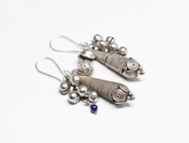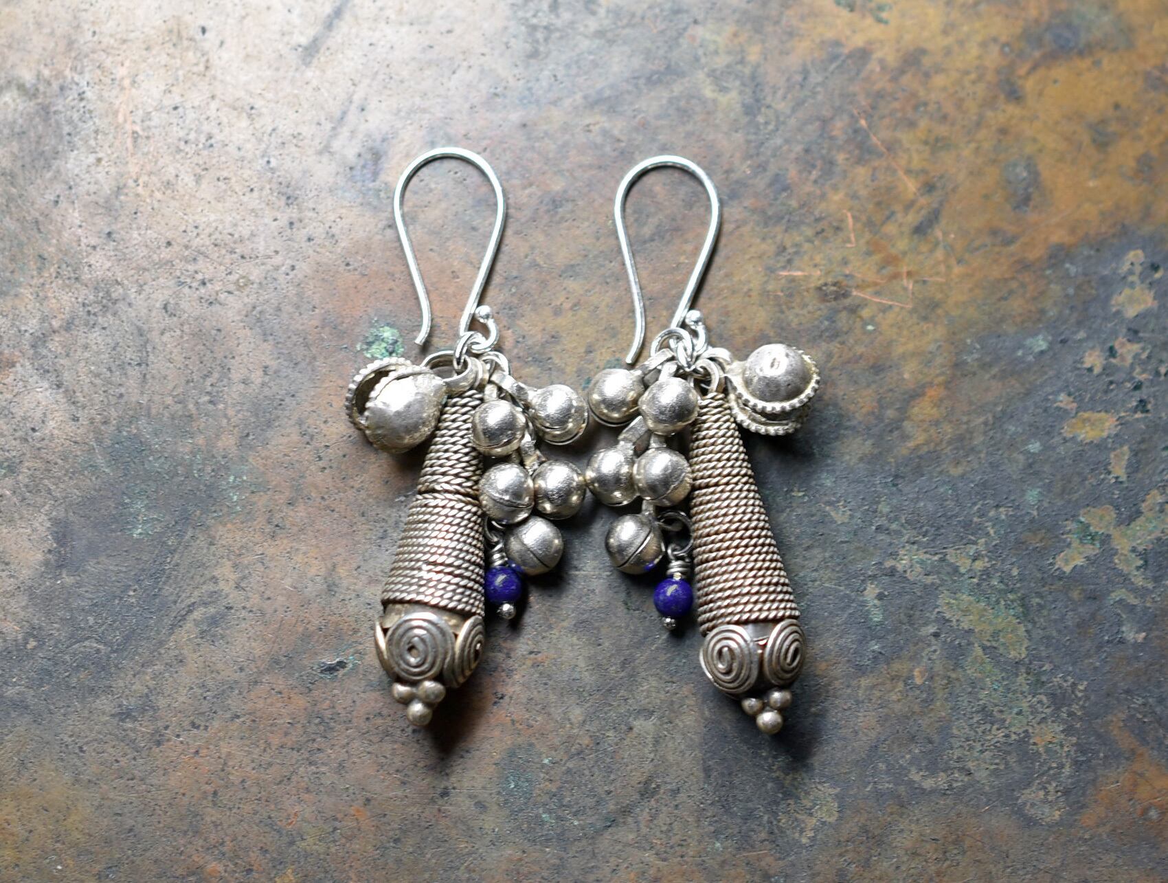 緻密な細工のoldアフガンシルバーと鈴、小さなラピスを繋いだピアスです。