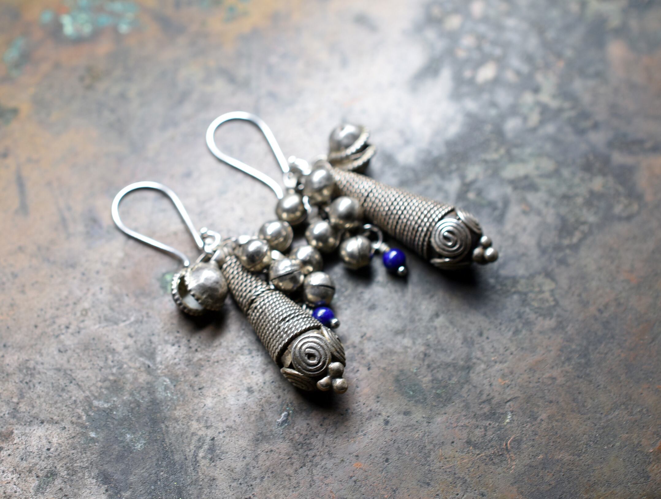 oldアフガンシルバーと、たわわな鈴とラピスのピアス