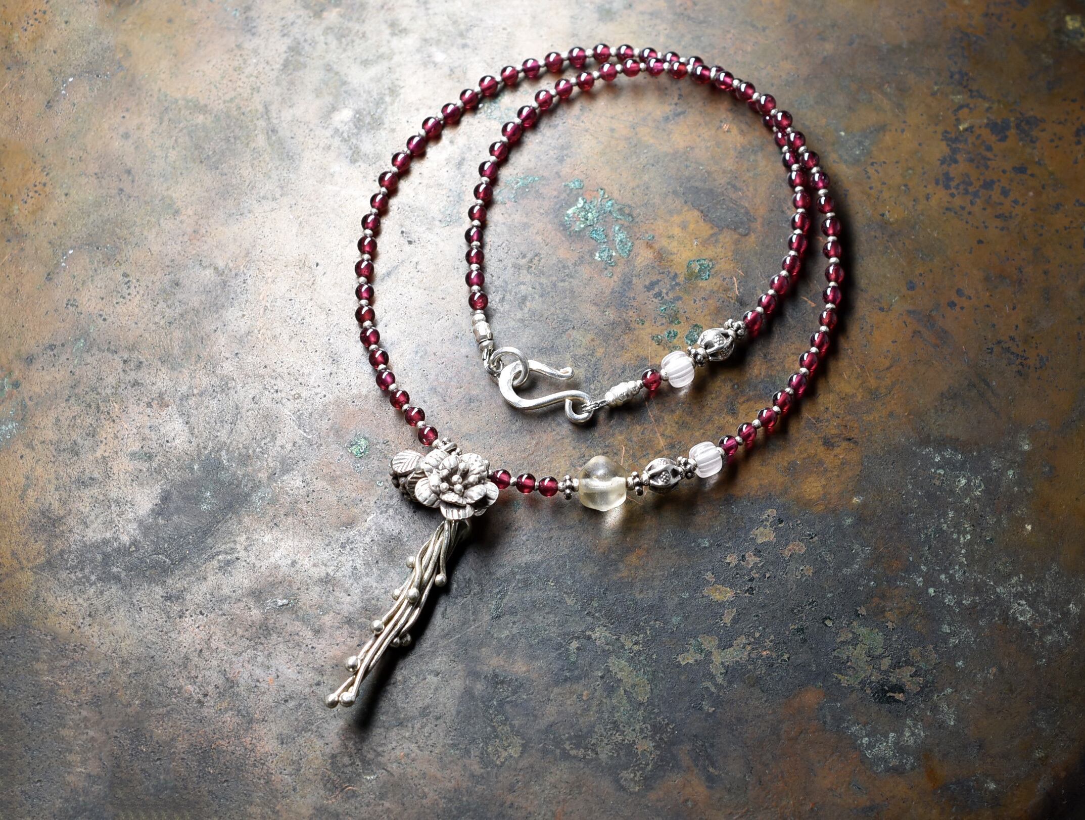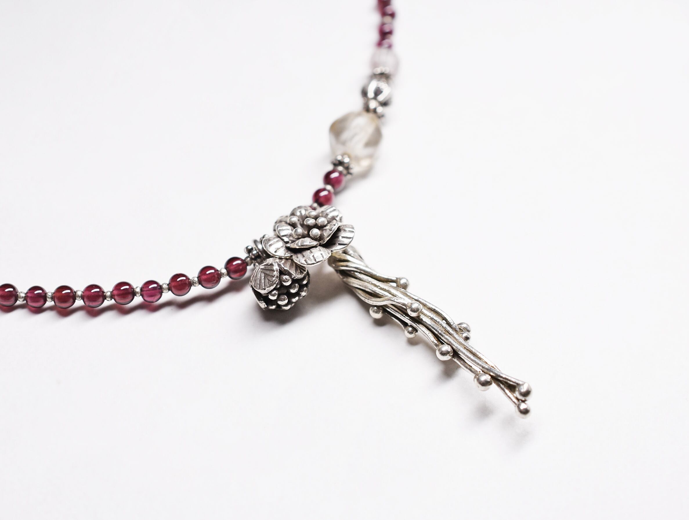 ボタニカルなカレンシルバーとガーネットのネックレス