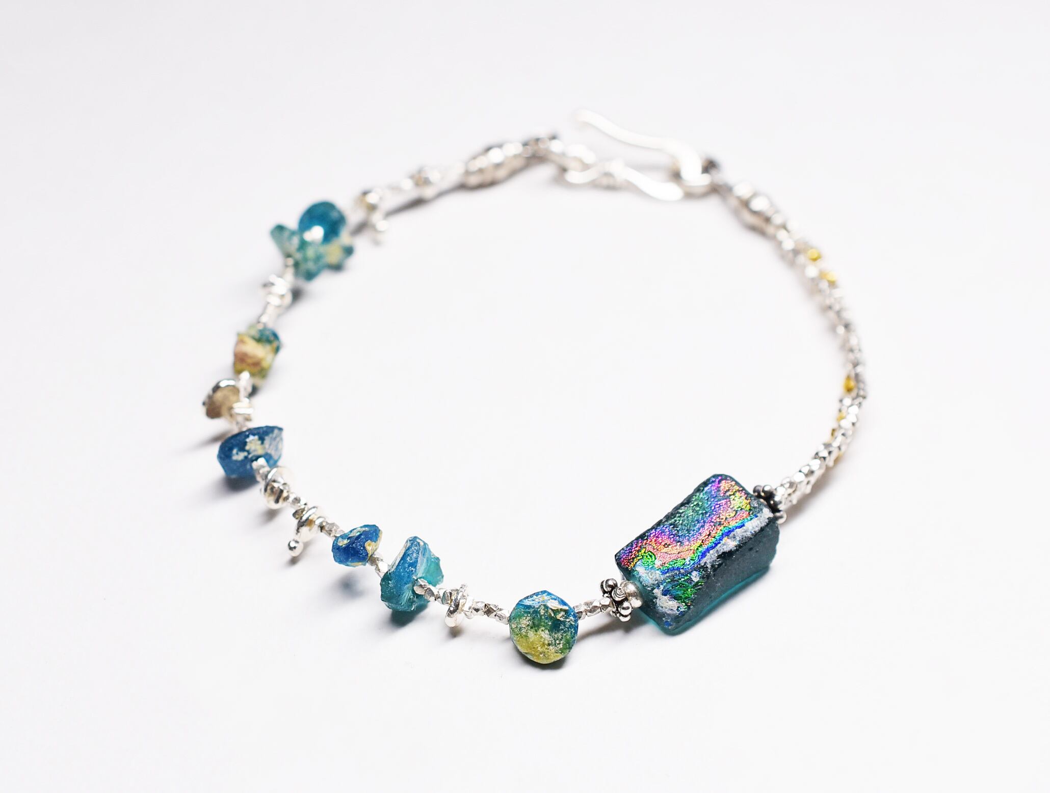 銀化ブルーローマングラスと煌めくカレンシルバーのブレス