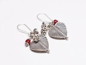 ハート型の葉っぱと花・蕾カレンシルバー、一粒濃赤ホワイトハーツのピアス