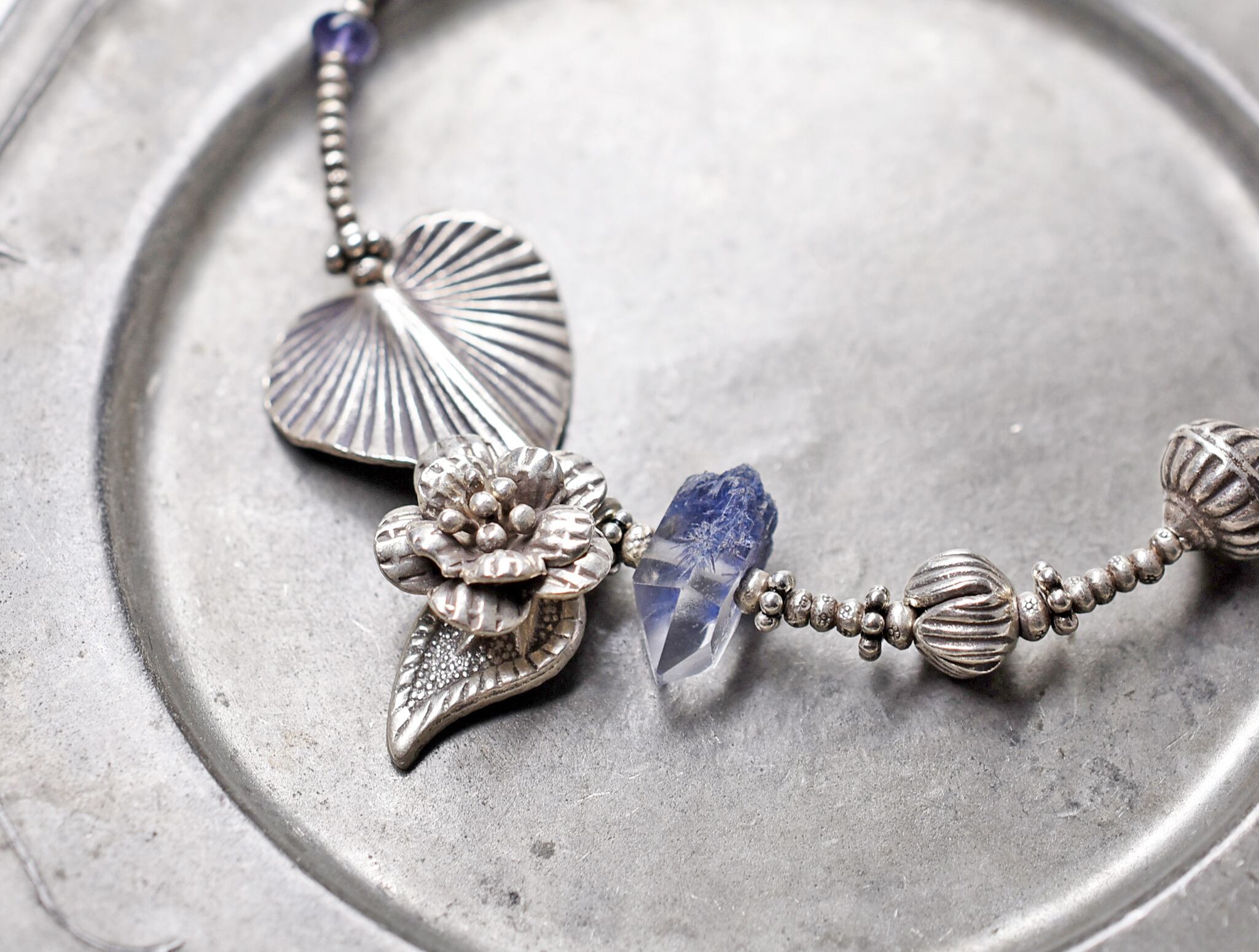 ボタニカルなカレンシルバーと、デュモルチェライトインクォーツのブレス