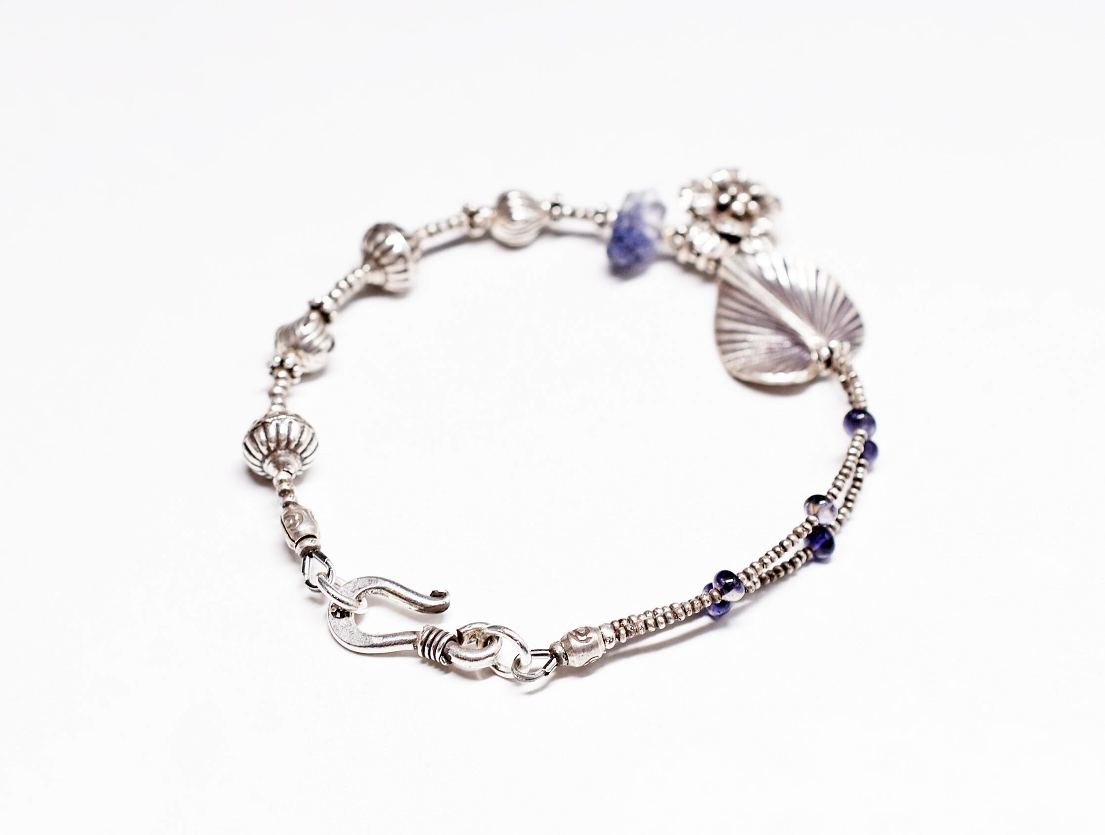 カレンシルバーをメインにデュモルチェライトインクォーツといアイオイトを繋いだブレスです。