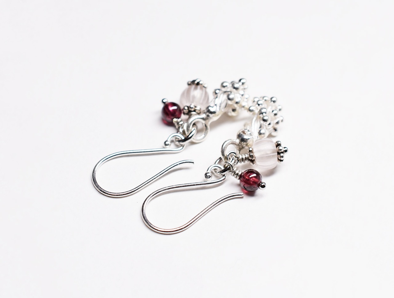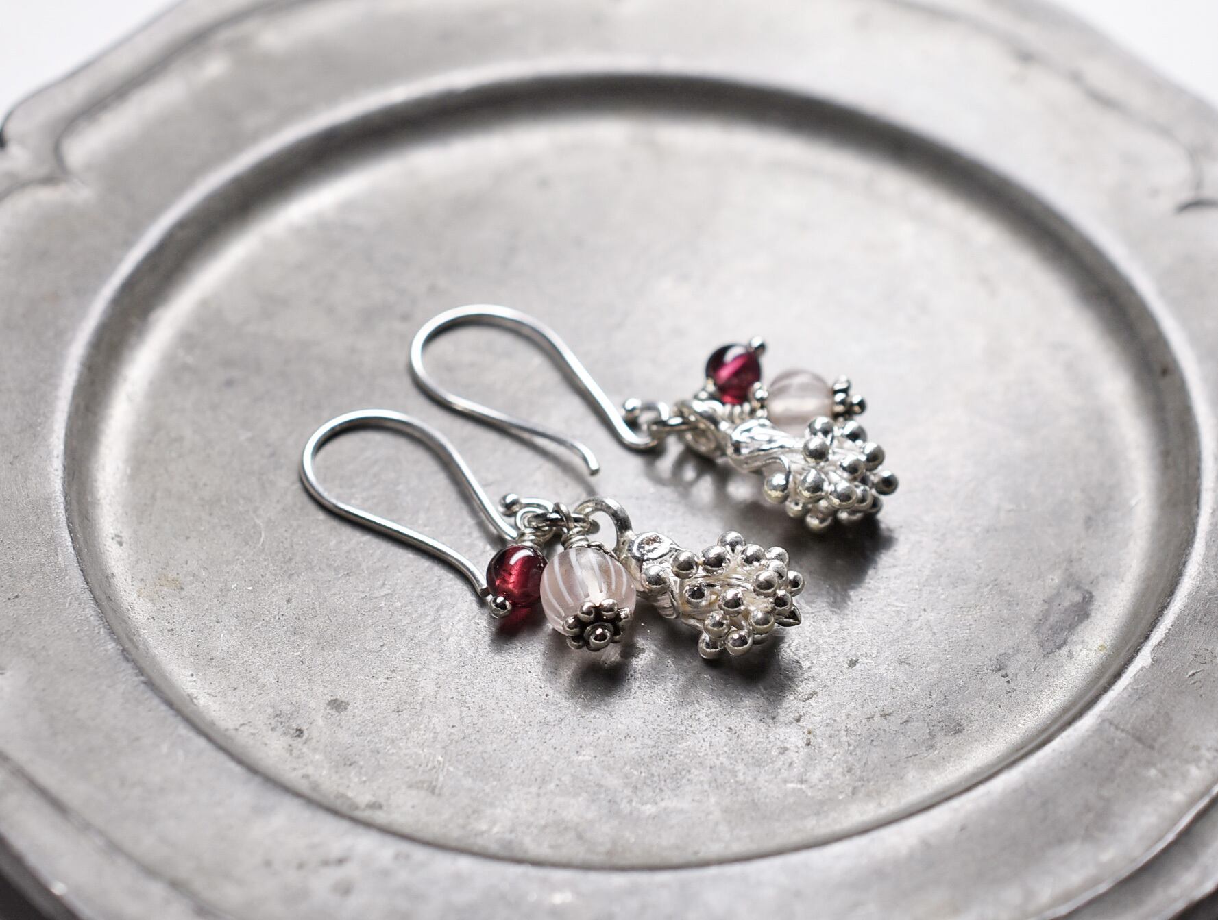 蕾カレンシルバーとグーズベリー、ガーネットのピアス