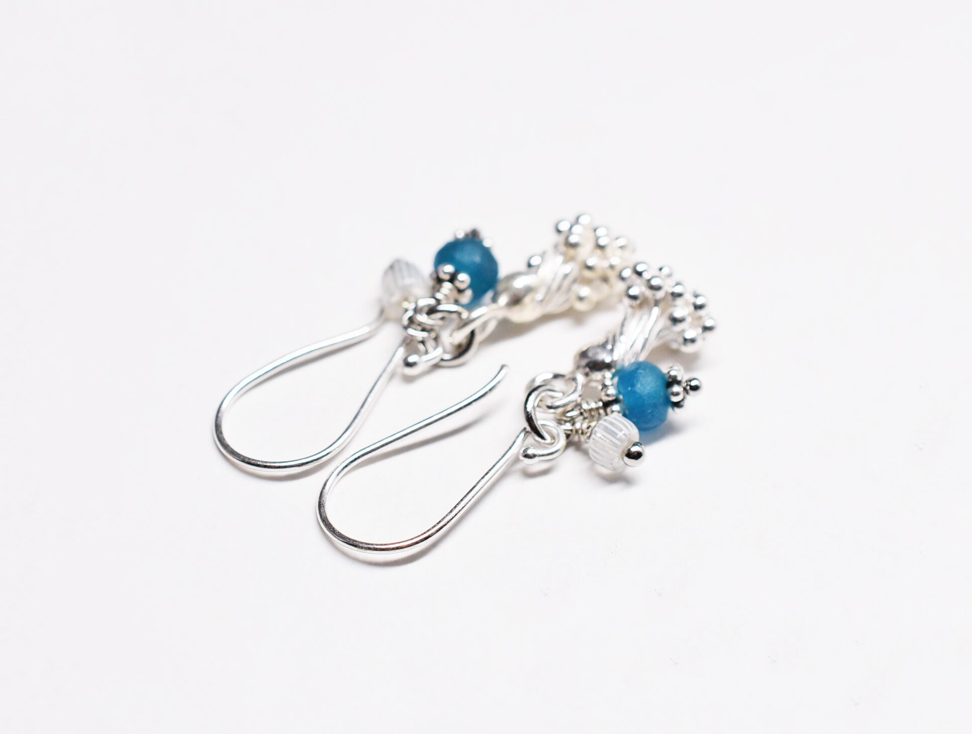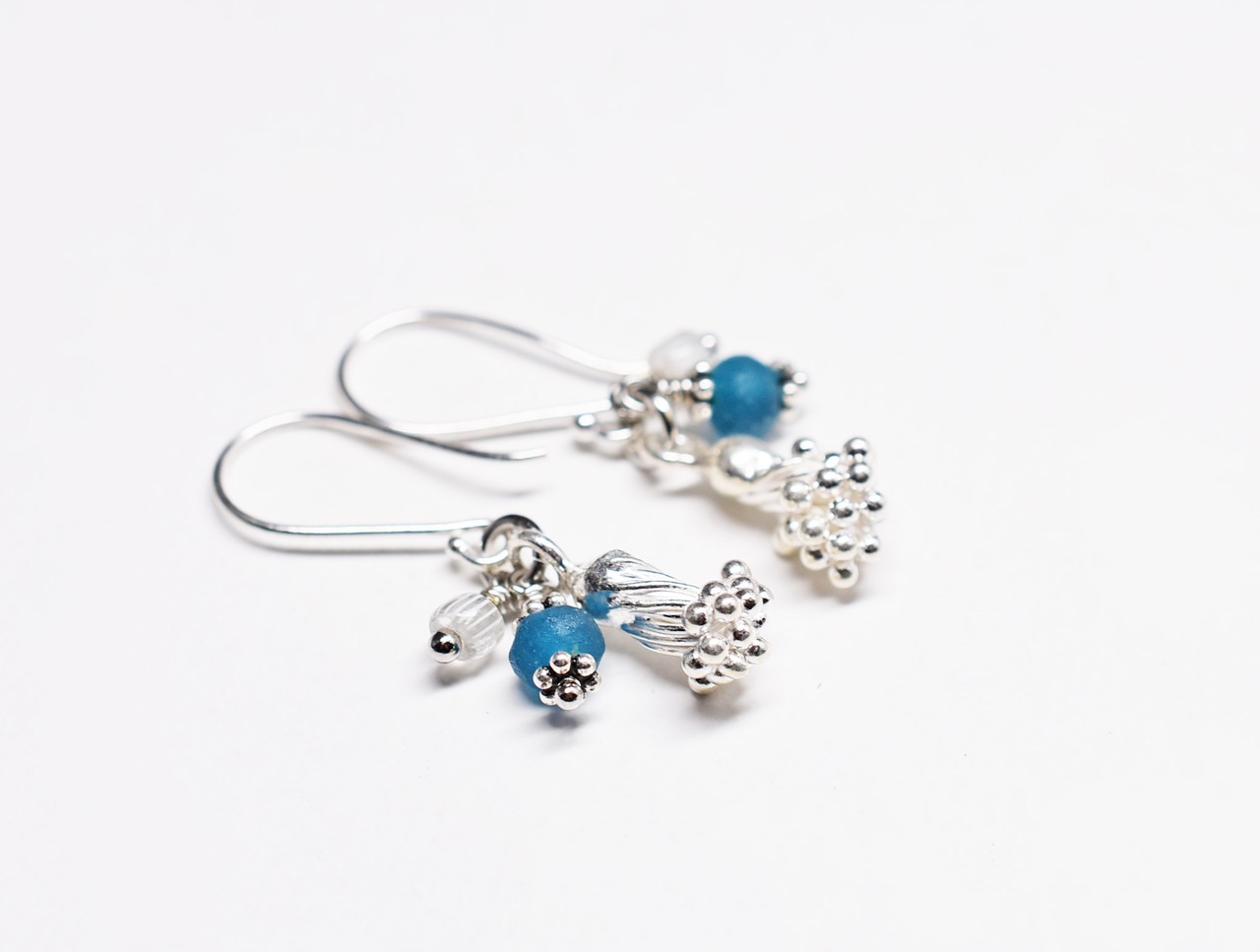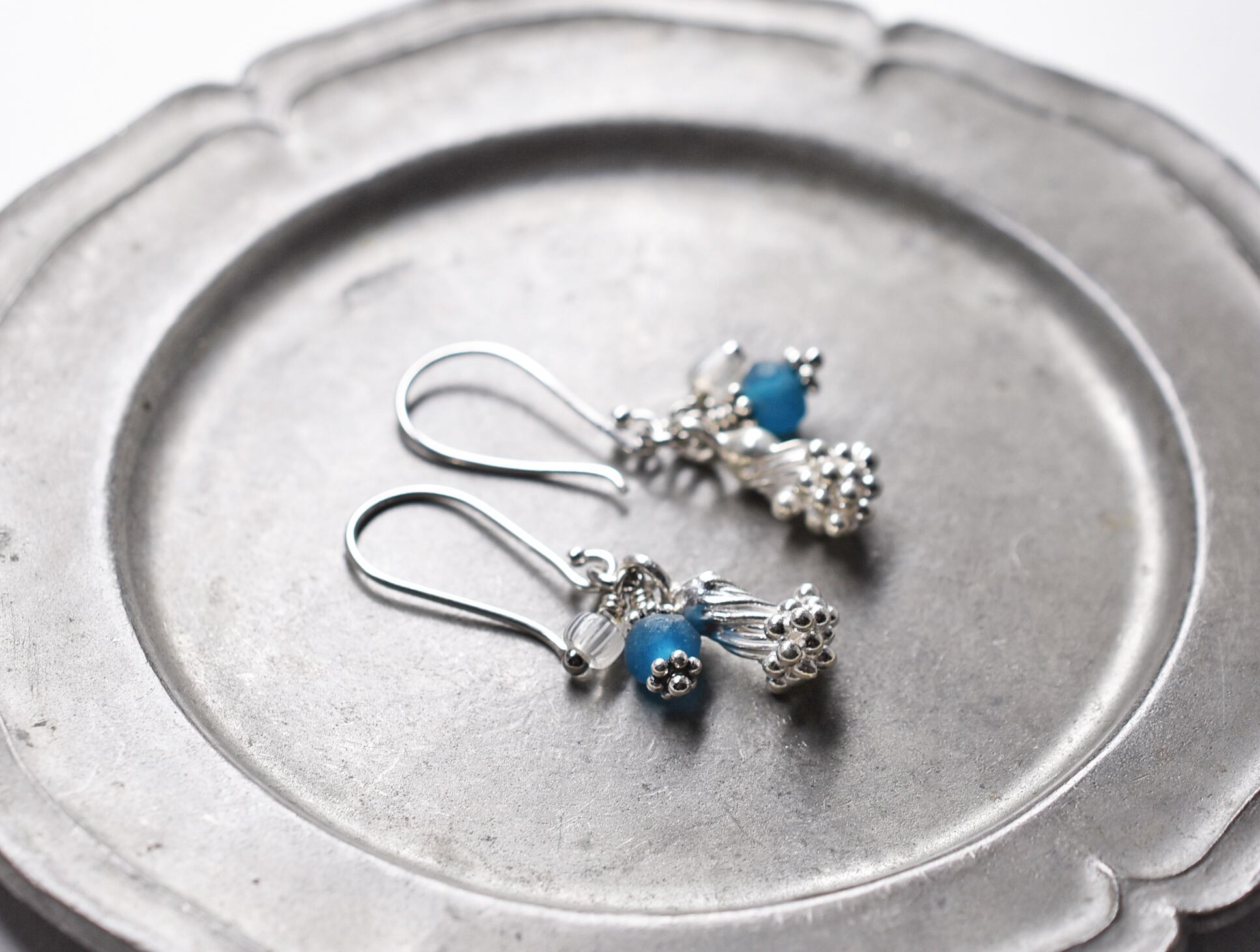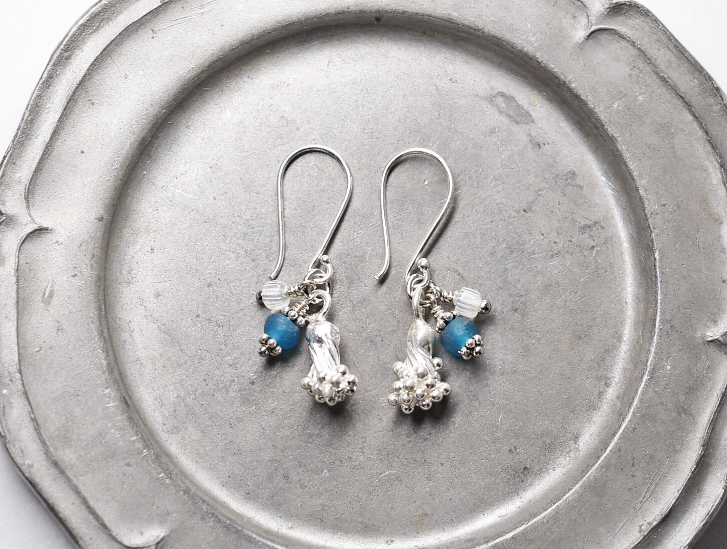 蕾カレンシルバーと雨粒ローマングラス、グーズベリーのピアス
