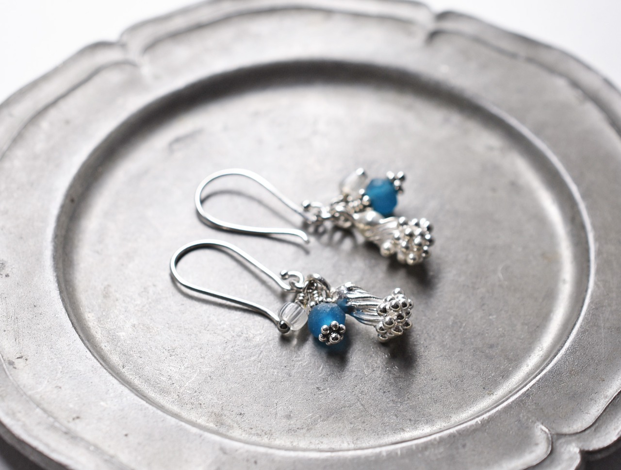 蕾のようなツブツブが集まったチャーム、フックはカレンシルバーです。
