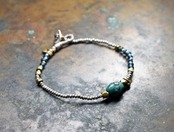 oldチベタンターコイズとインディゴブルービーズとカレンシルバーのブレス