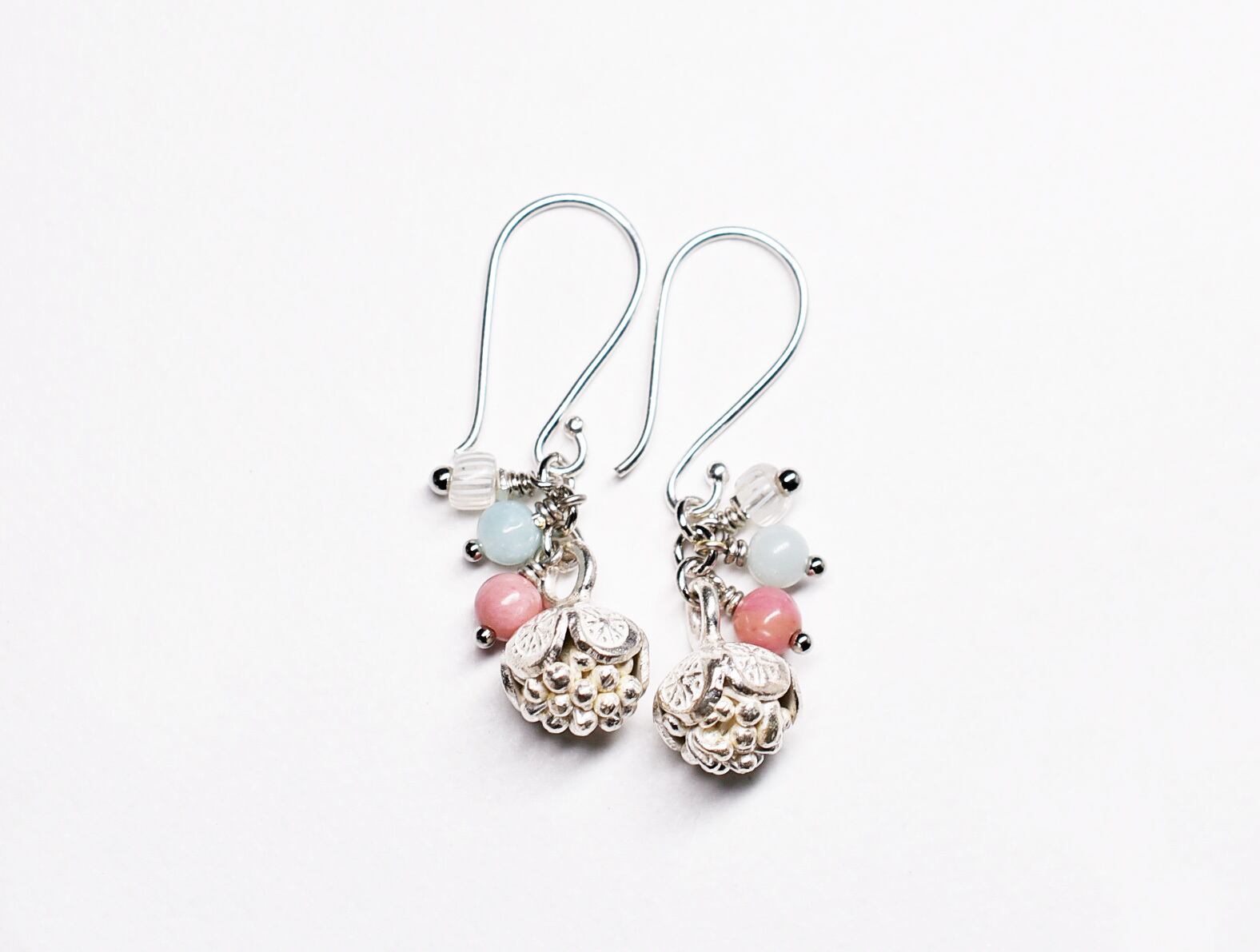 コロンと丸いカレンシルバーとロードナイト、アマゾナイト、グーズベリーのピアス