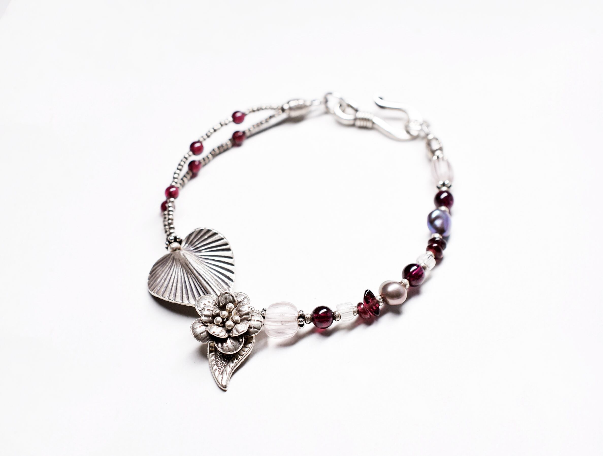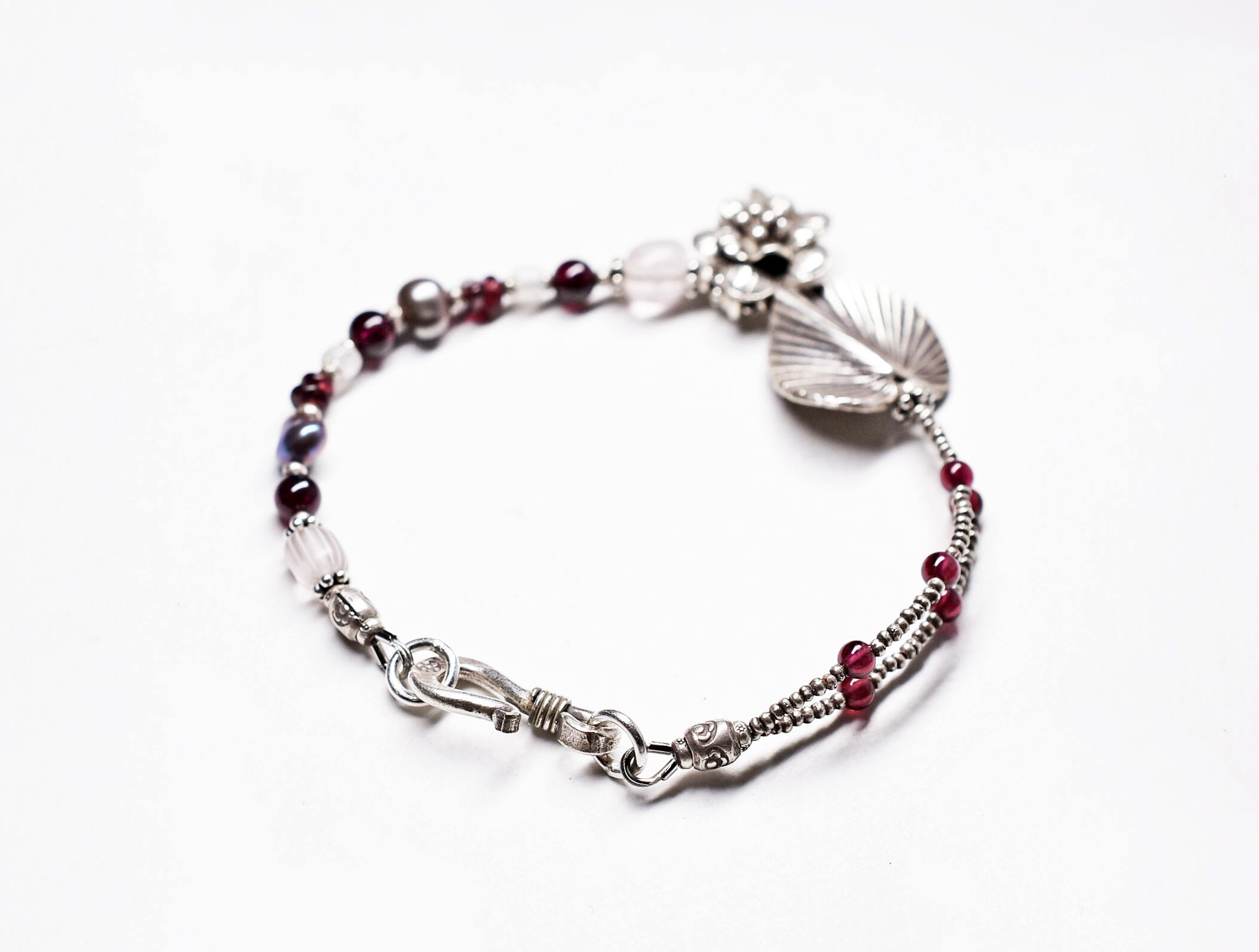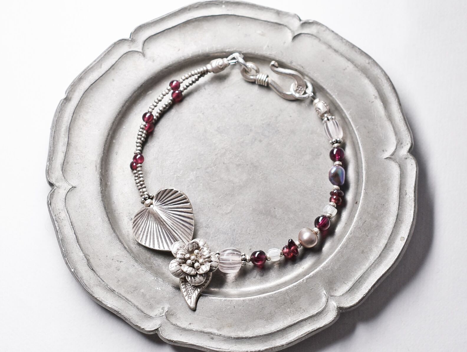 ボタニカルなカレンシルバーと、グーズベリー、ガーネット、バロックパールのブレス