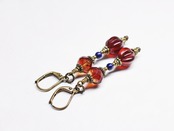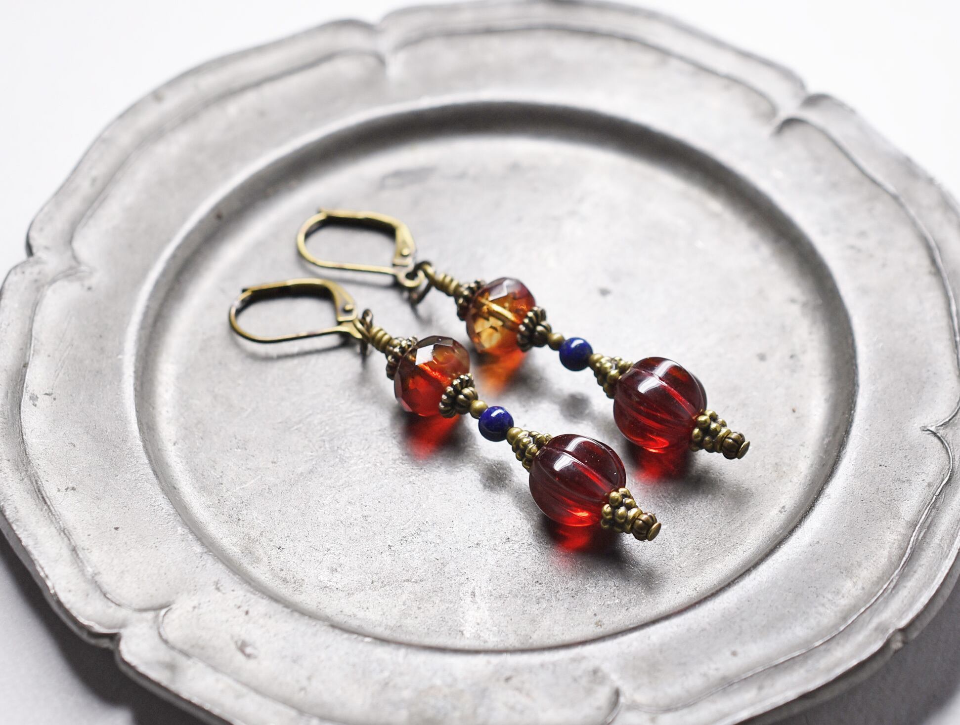 真っ赤なドイツヴィンテージビーズとチェコビーズ、ラピスのピアス