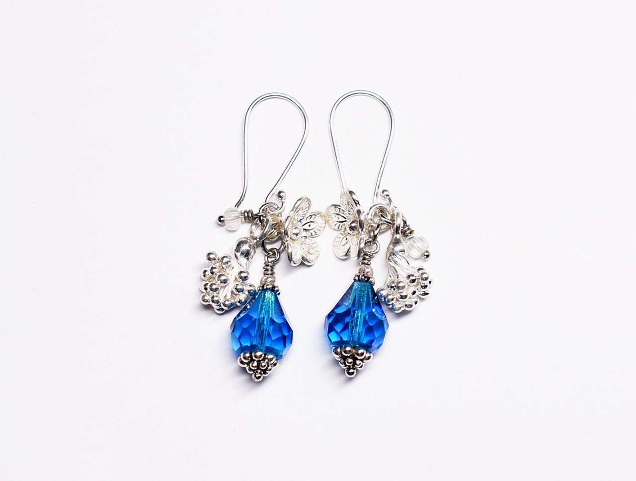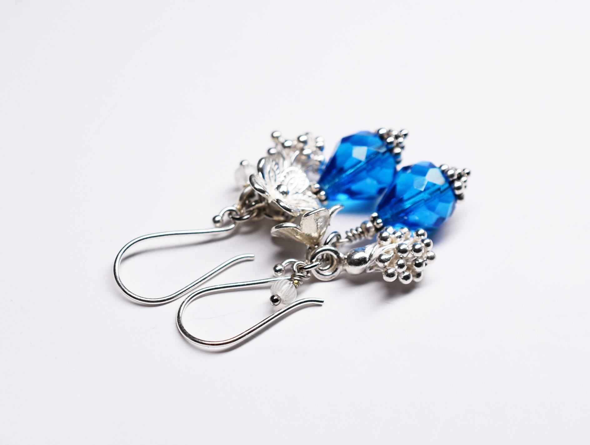 とても鮮やかなブルーにカレンシルバーの華やかさが加わり、ぱっと目を惹くピアスです。