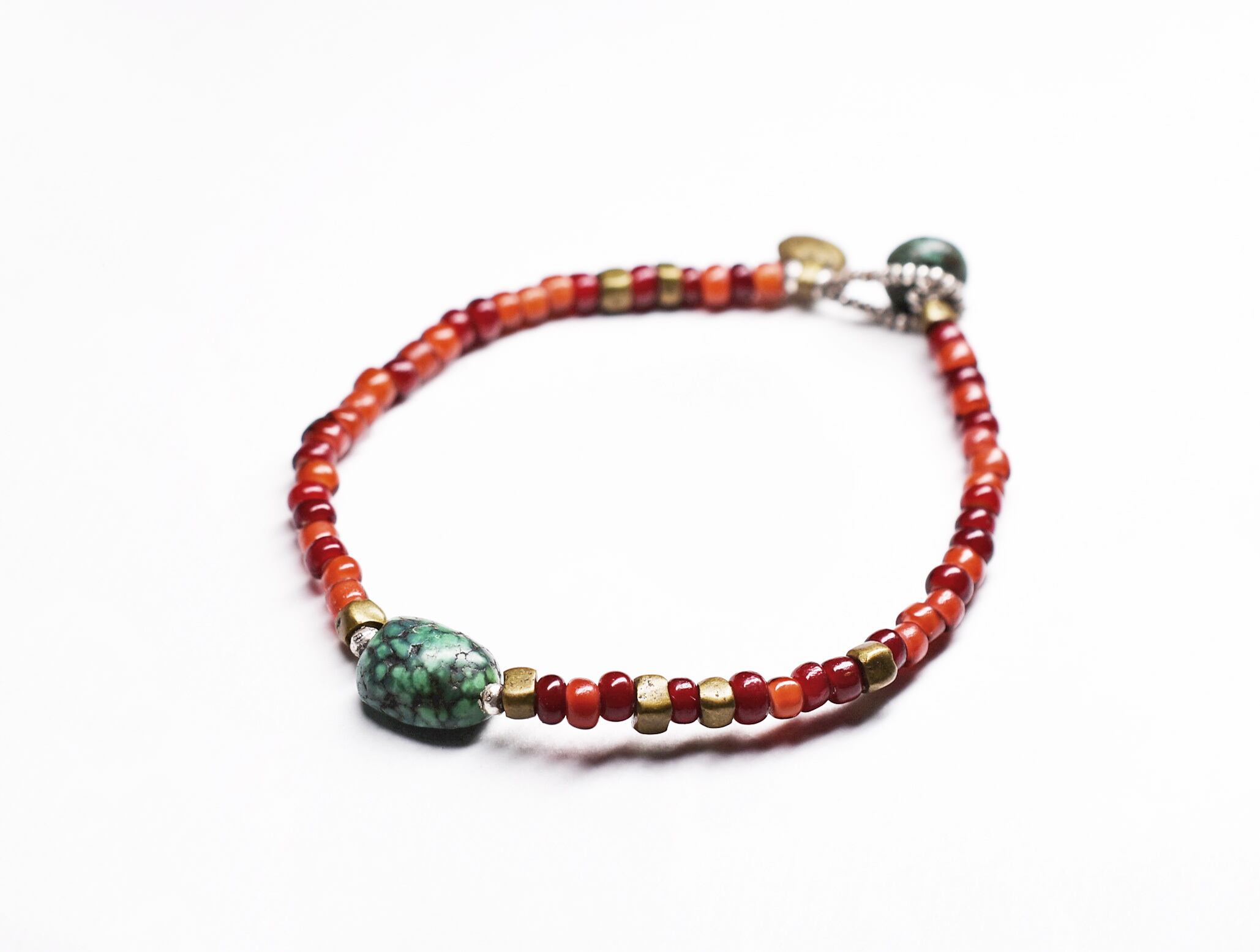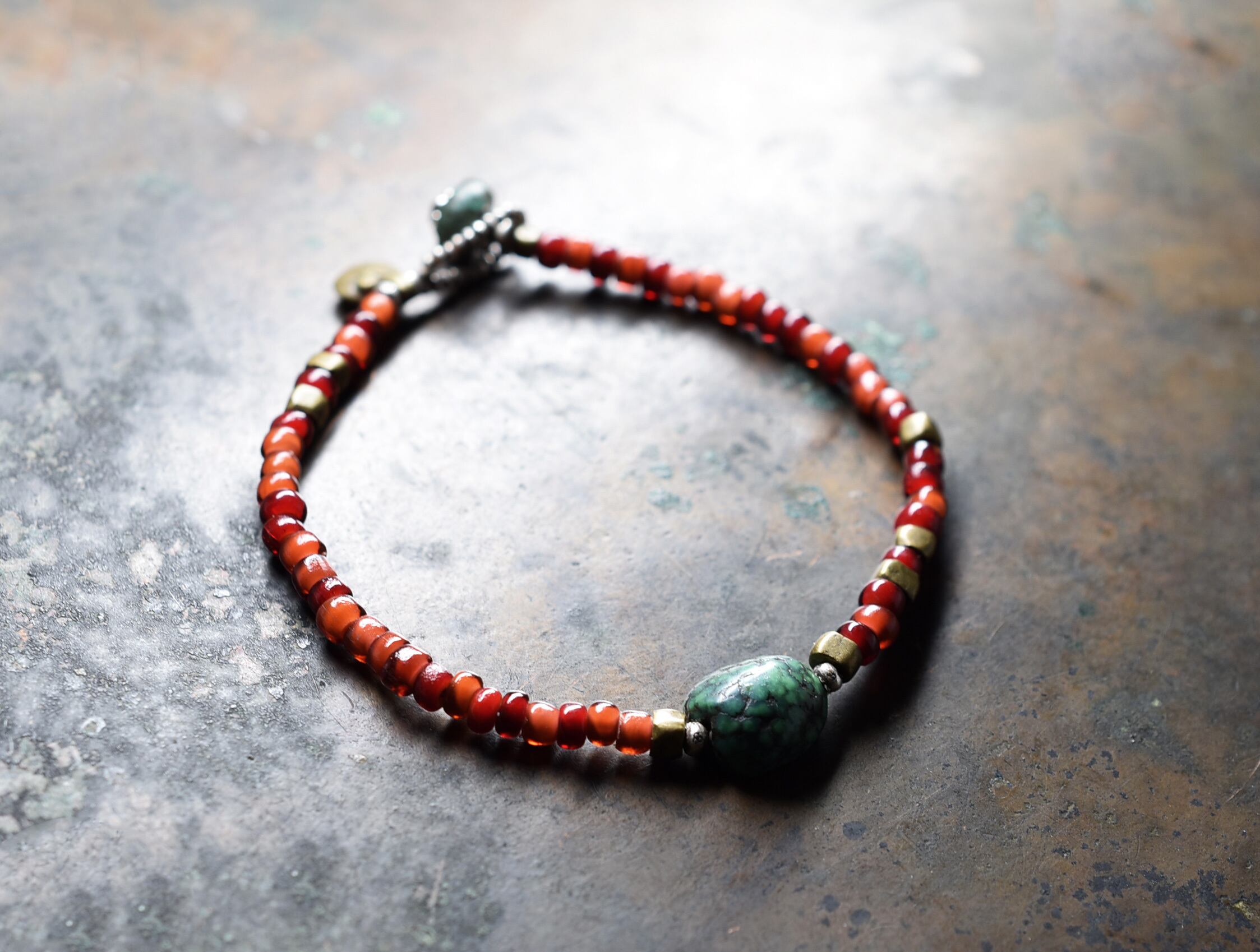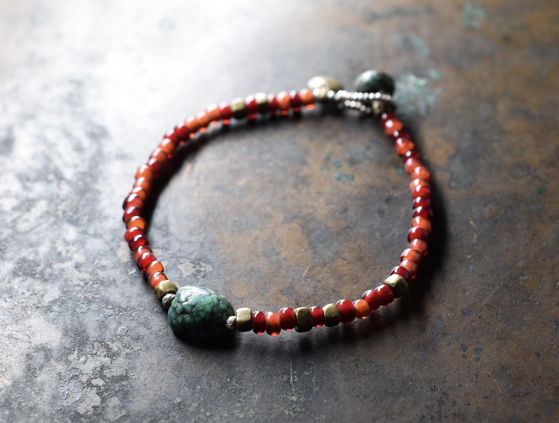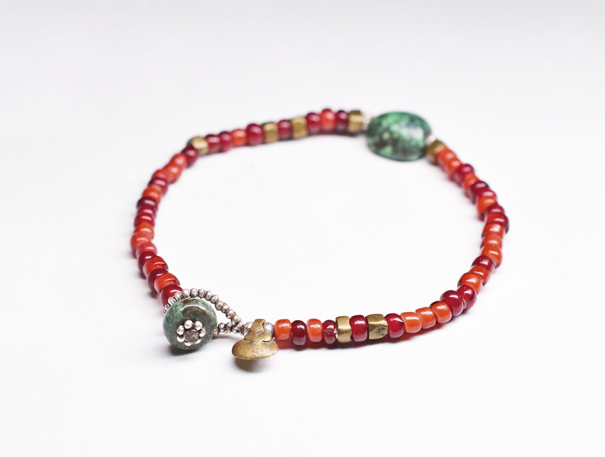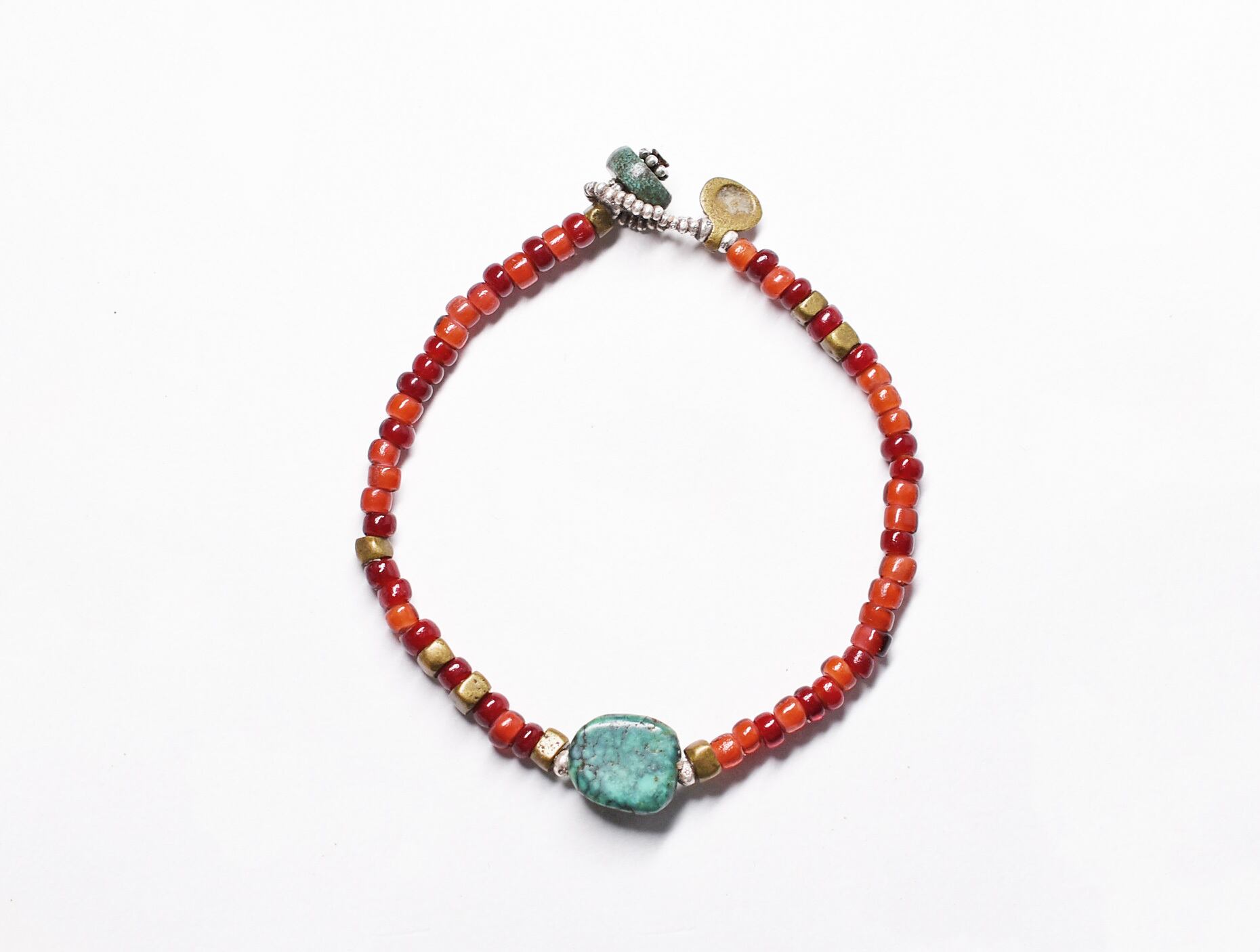 oldチベタンターコイズと金赤&血赤ホワイトハーツと、oldオリッサブラスのブレス