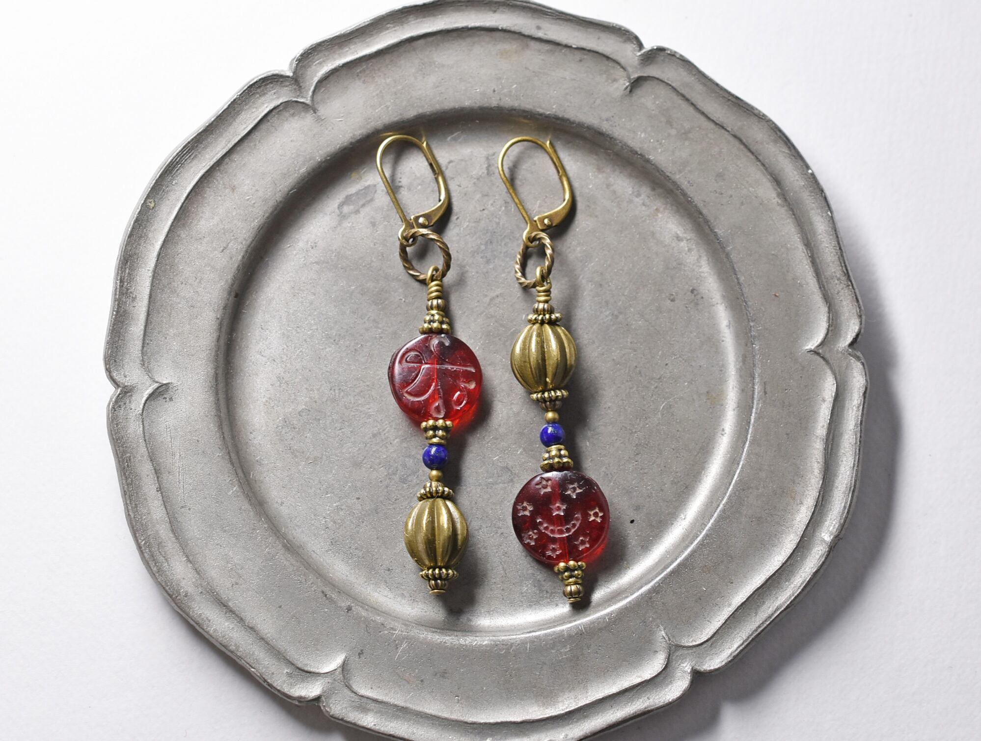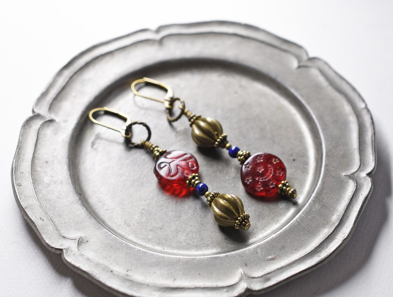 聖者のビーズとスラウェシ島oldブラス、ラピスのアンシメトリーピアス