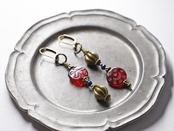 聖者のビーズと古いブラスビーズ、ラピスを繋いだピアスです。