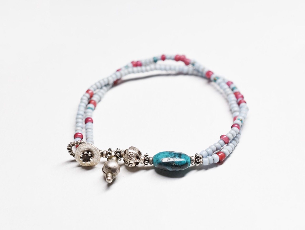 素材:ガラス、カレンシルバー、ターコイズ、ロウビキ紐