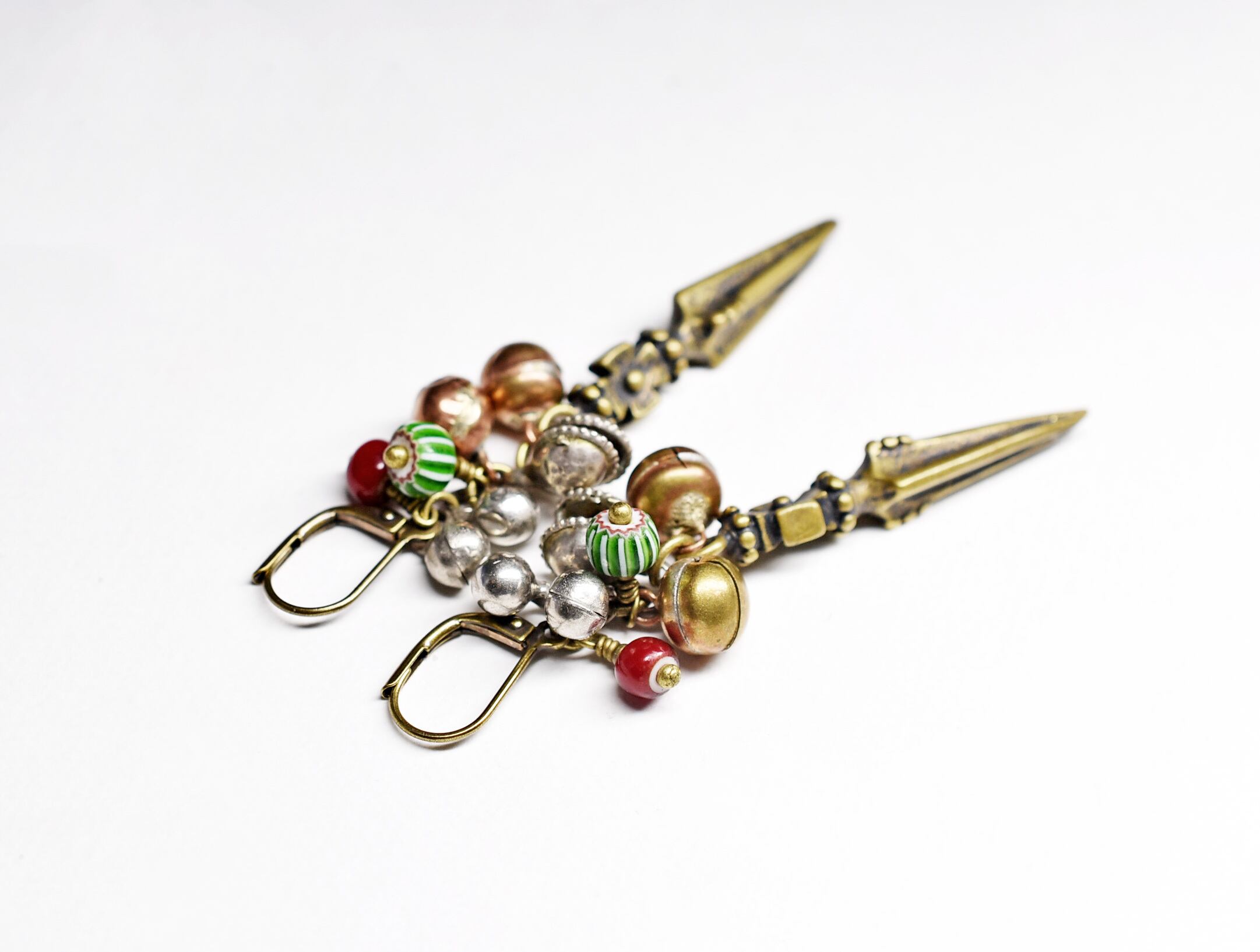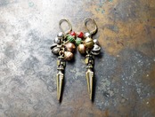 ブルパと数種類の鈴、グリーンシェブロンビーズとホワイトハーツを繋いだピアスです。
