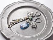 銀化したローマングラスと、カレンシルバーチャーム、さざれの小さなローマングラスを繋いだアンシメトリーのピアスです。