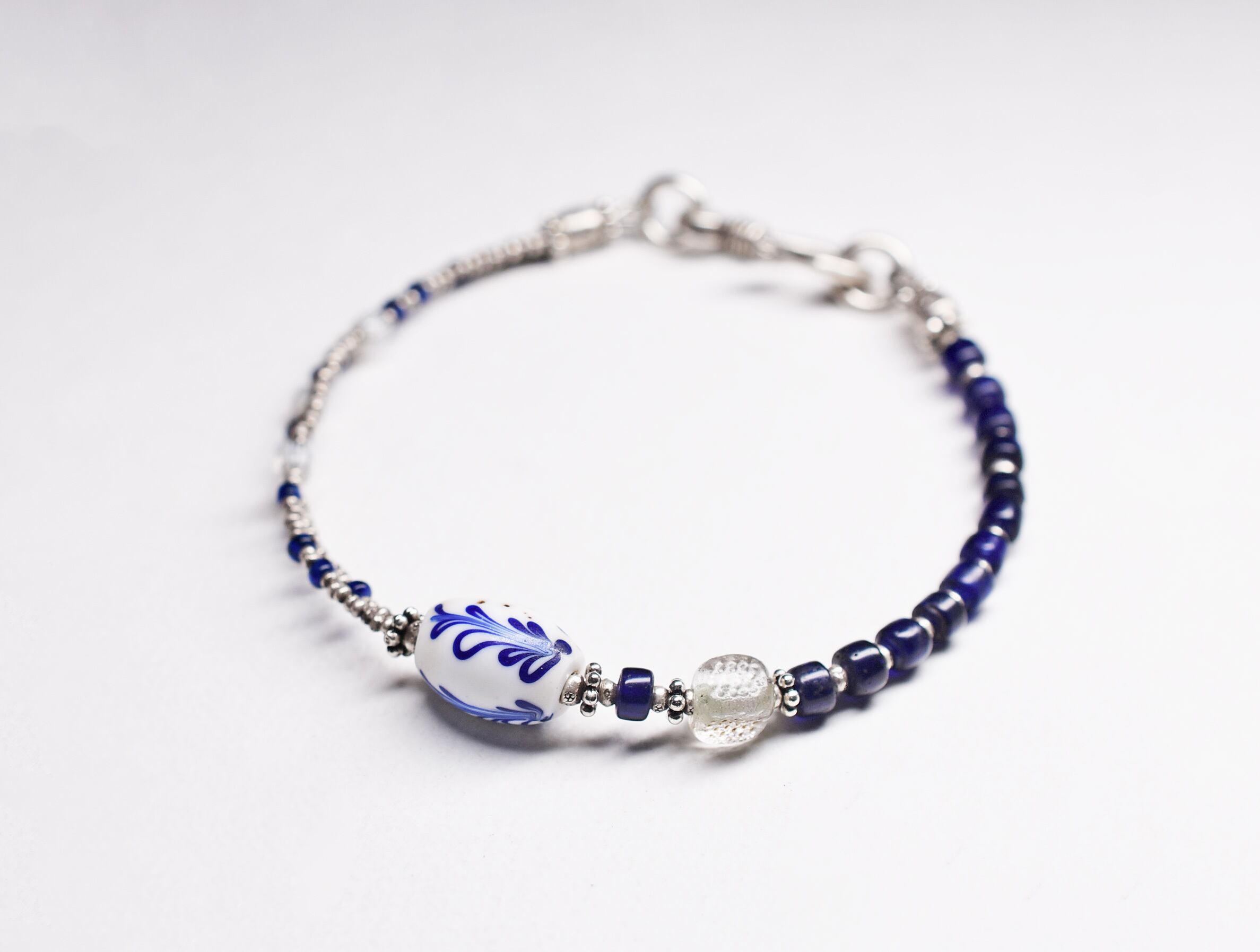 ダッチデルフトと瑠璃色アンティークビーズ、カレンシルバーのブレス